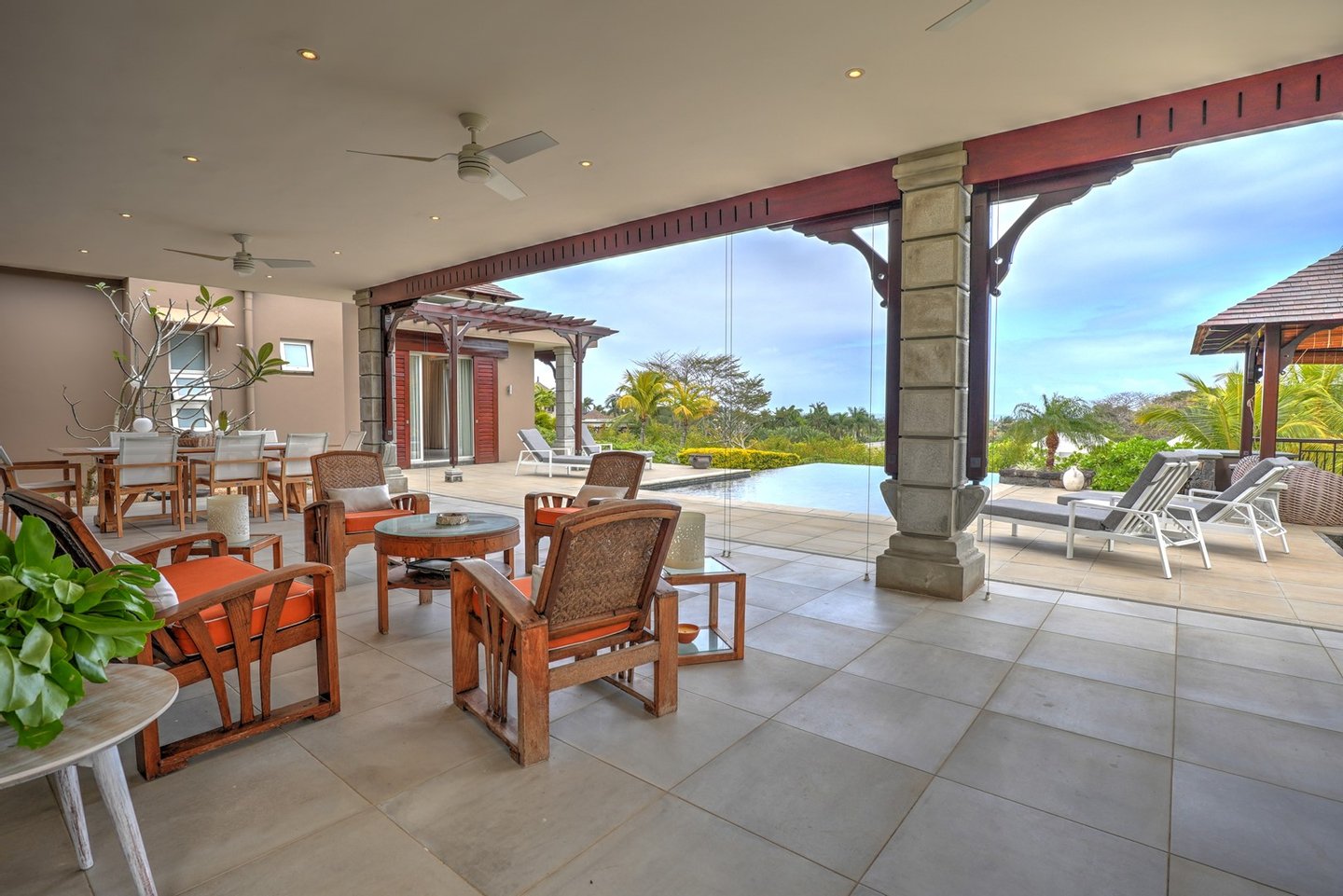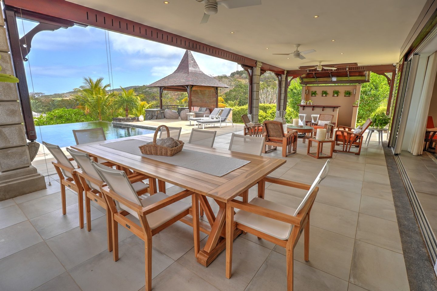 Diese 418 m² große Villa liegt auf den Höhen der Heritage Villas Valriche und zeichnet sich durch ihre moderne Architektur aus, die einen authentisch tropischen Charakter bewahrt. Es ist auf absoluten Komfort ausgelegt und bietet großzügige Wohnräume auf einer Ebene, ohne Treppen.