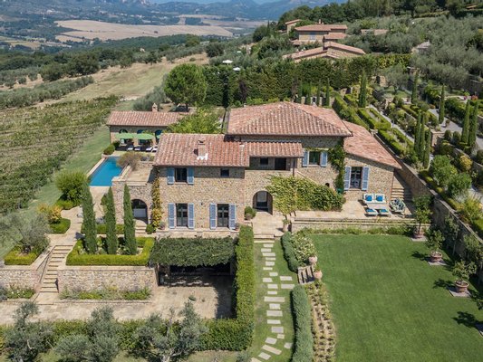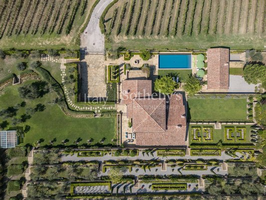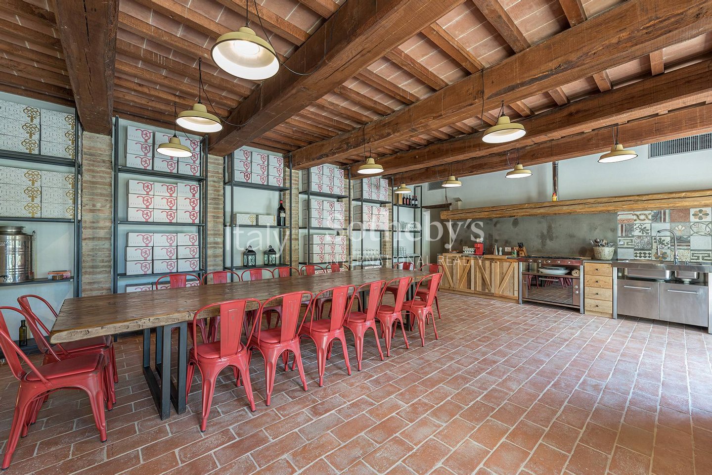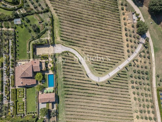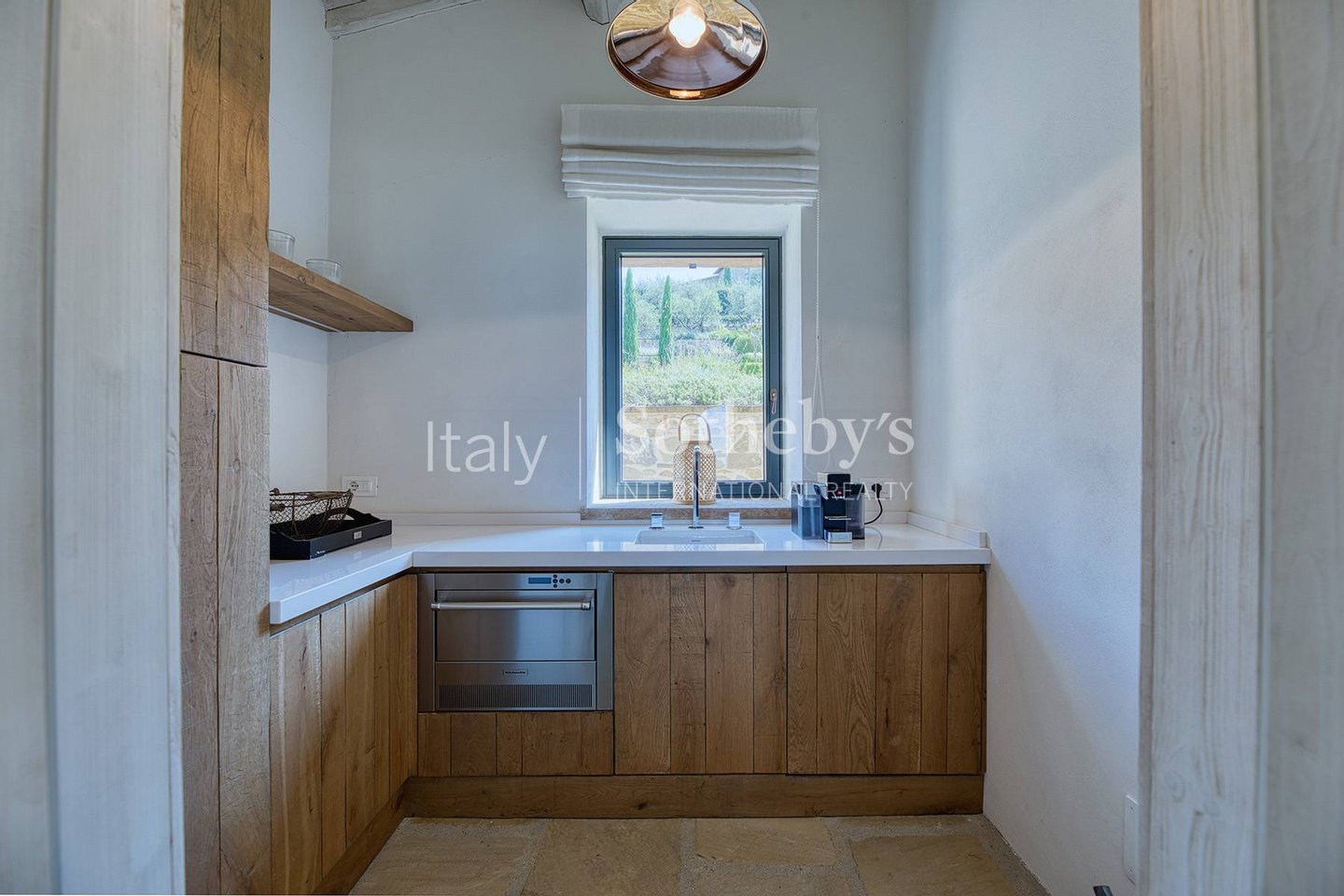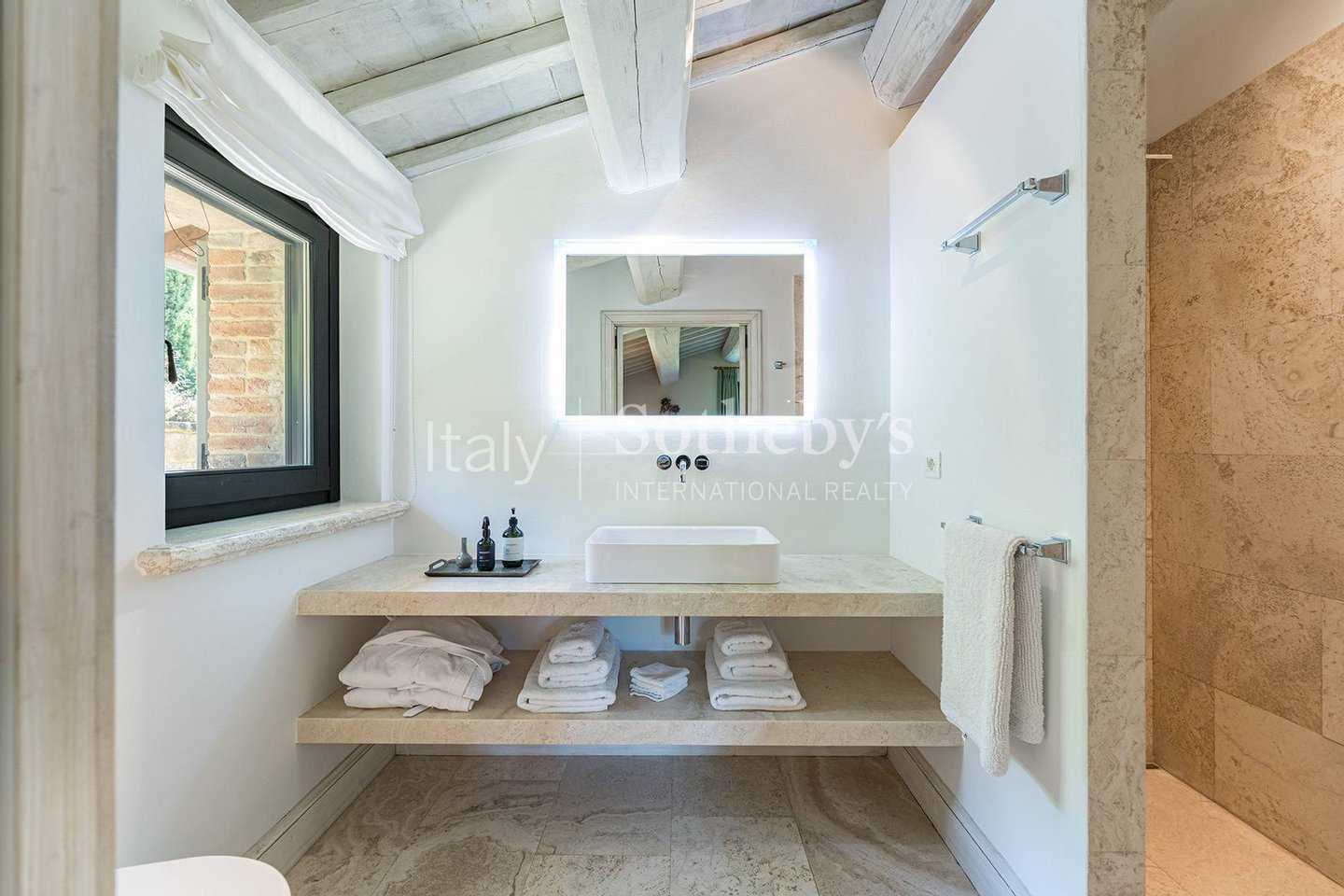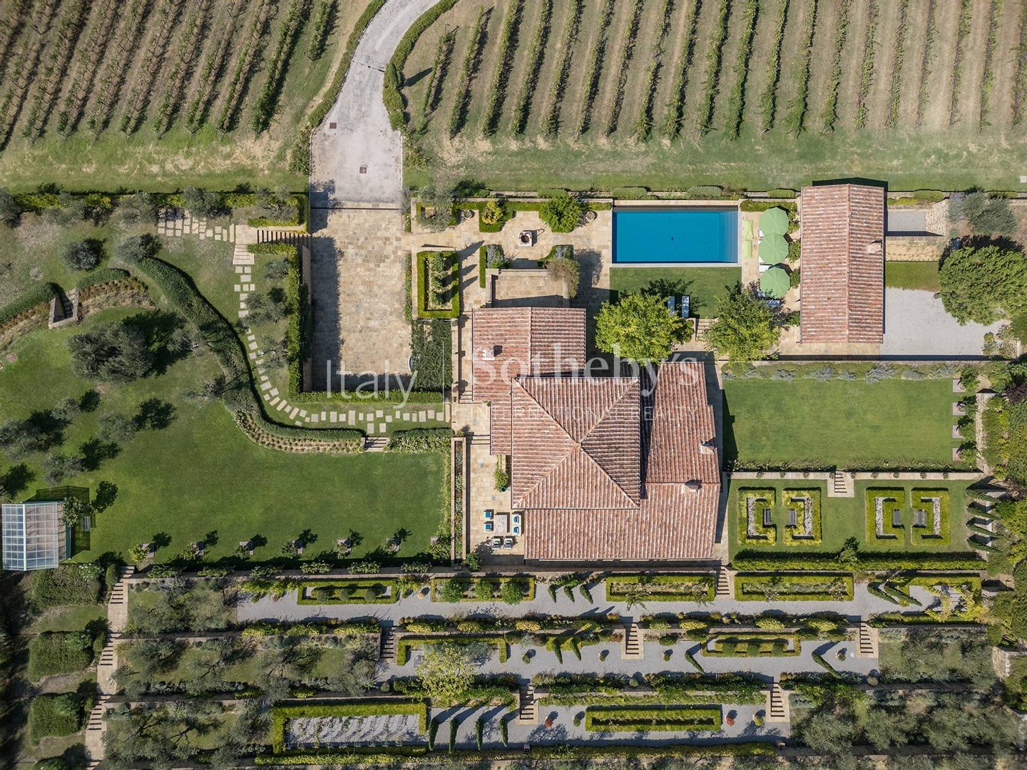 Das Anwesen erstreckt sich über 12 Hektar, davon 8 Hektar Weinberge, die 4000 Flaschen pro Jahr produzieren; mehr als 3 Hektar sind für die Ölproduktion reserviert, 5,5 Hektar sind Ackerland und etwa 2 Hektar sind Wald. Es gibt einen privaten Teich und ein 84 m² großes landwirtschaftliches Nebengebäude. Die 2016 erbaute Immobilie verfügt über eine hohe Energieeffizienzklasse (A1) und stellt die perfekte Kombination aus traditionellem Umbriens und Modernität dar, wie an den Möbeln, den verwendeten Technologien, der Fußbodenheizung/Kühlung, der Innenbeleuchtung und den verwendeten Materialien zu sehen ist: Stein für die Türrahmen und Travertin für die Böden. Das Haus zeichnet sich durch große, lichtdurchflutete Räume aus, mit großen Fenstern, die einen herrlichen Blick auf das Tal und das charakteristische Dorf Piegaro bieten.