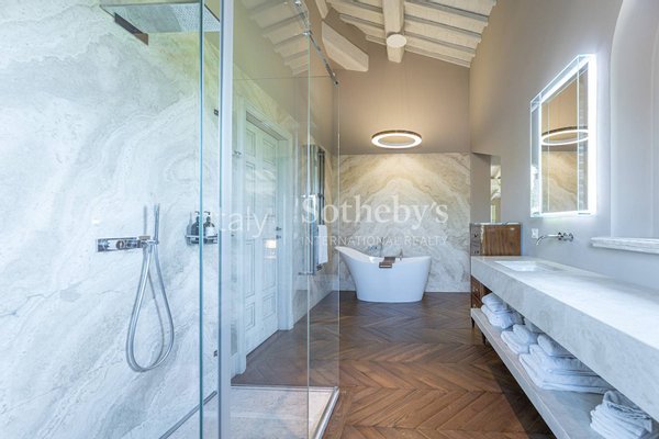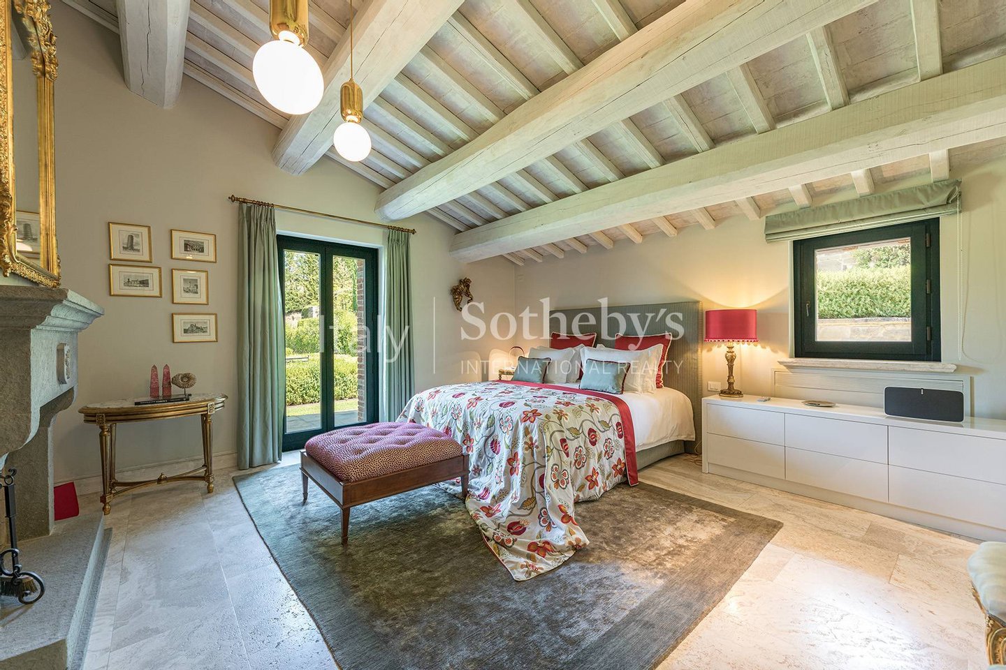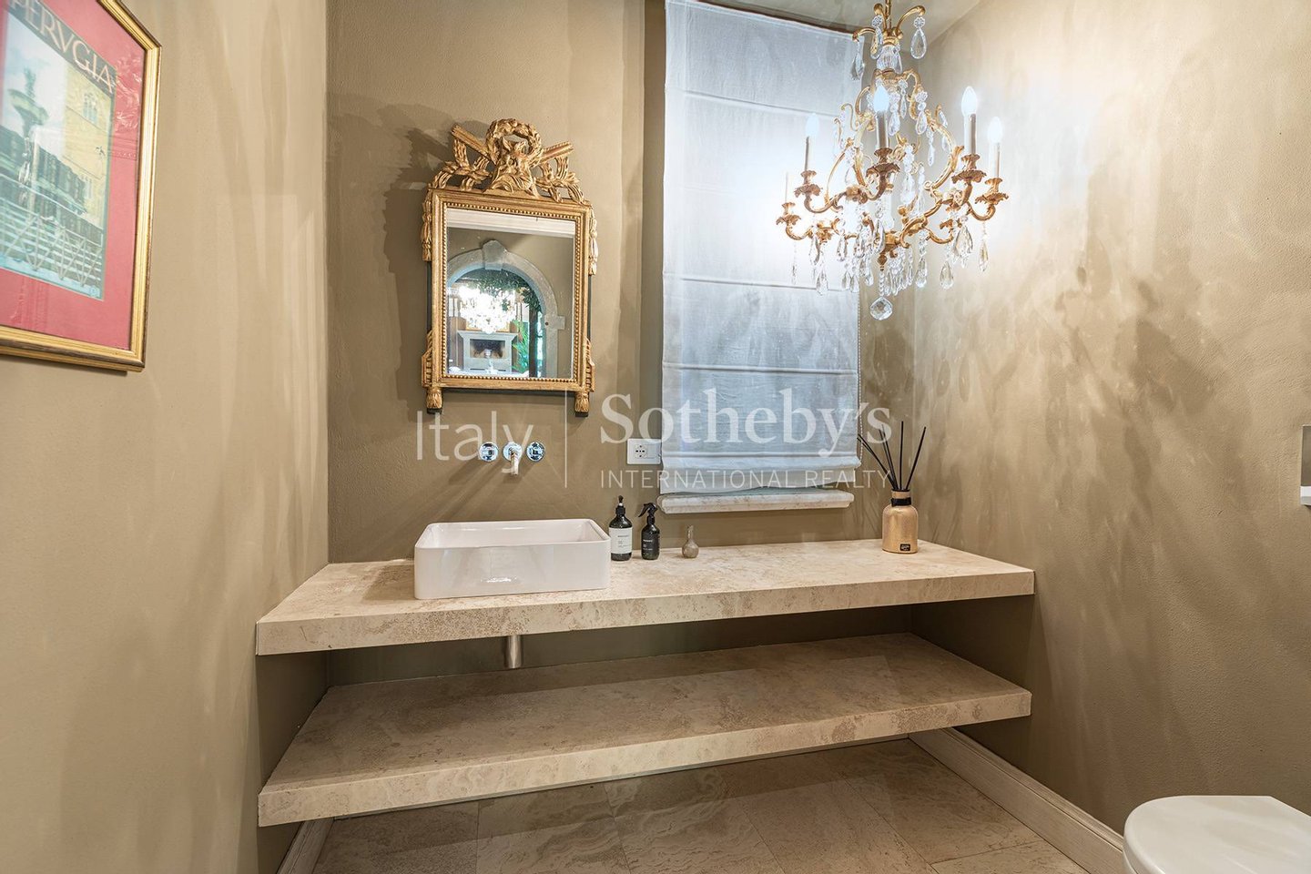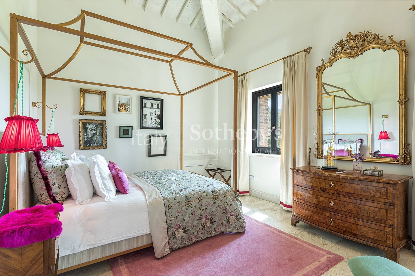 Im Außenbereich schaffen der italienische Garten und architektonische Details wie der Seerosenbecken und der Brunnen eine wirklich entspannende Atmosphäre. Der 12x6 Meter große Pool, der mit Sauerstoff gereinigt und beheizt wird, ist eine Oase der Entspannung mit atemberaubendem Blick. Zur Komplettierung des Anwesens bietet die Dependance ein großzügiges Open Space mit Kamin, Wohnbereich, Doppelbett, komplett ausgestatteter Küche und Bad, ideal für Gäste oder als Fitnessraum oder Atelier.