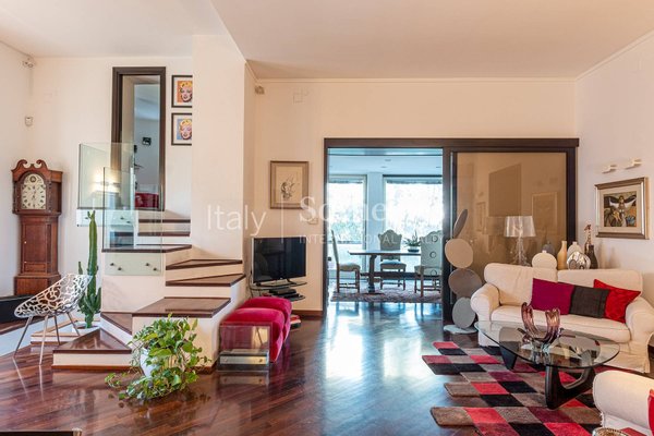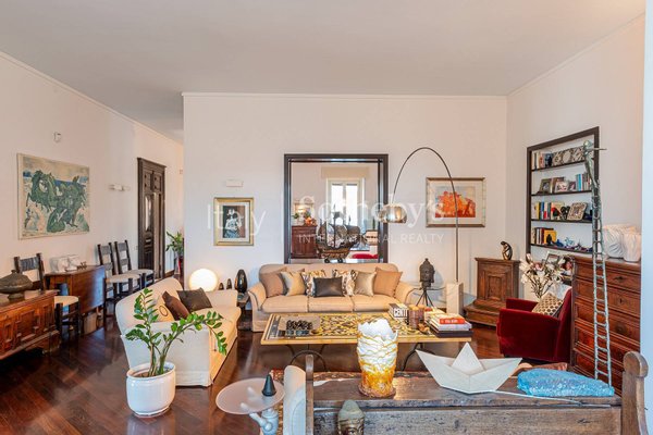 Die großzügig geschnittene Wohnung erstreckt sich über das gesamte zweite Stockwerk des Gebäudes und bietet Ausblicke auf das umliegende Grün sowie den herrlichen Golf von Neapel. Dank des regulären Grundrisses, des doppelten Eingangs und der günstigen Ausrichtung eignet sie sich auch für eine eventuelle Teilung.
