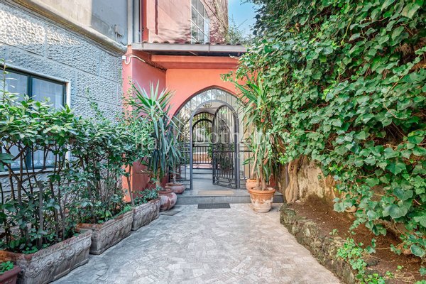 Auf der oberen Seite des Hügels von Posillipo, in einem exklusiven, ruhigen und abgeschiedenen Umfeld, befindet sich eine charmante und charaktervolle Wohnung in einer historischen Villa mit eklektischem Stil, umgeben von einem großen Garten mit