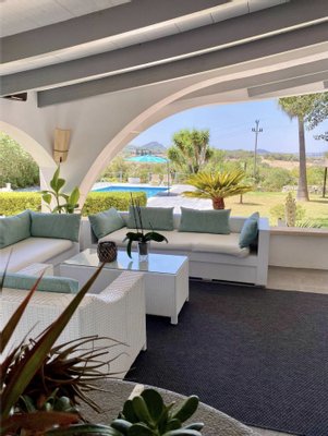Eine große Garage mit Werkstattbereich sowie moderne technische Einrichtungen wie Videoüberwachung, Bewässerungssystem und Trinkwasseraufbereitungsanlage runden das Angebot ab. Die zentrale Lage ermöglicht eine bequeme Anreise zum Flughafen von Palma in nur ca. 30 Minuten.