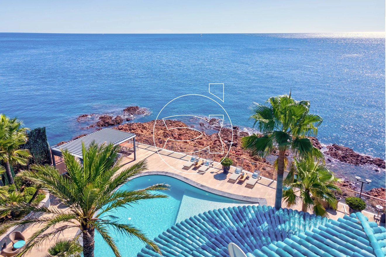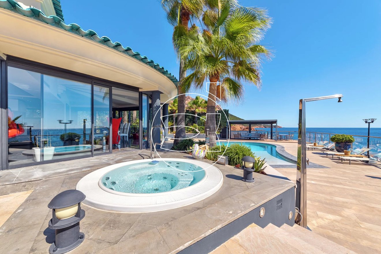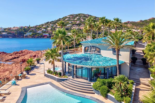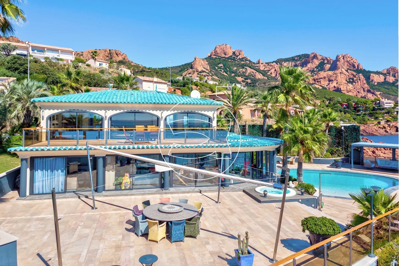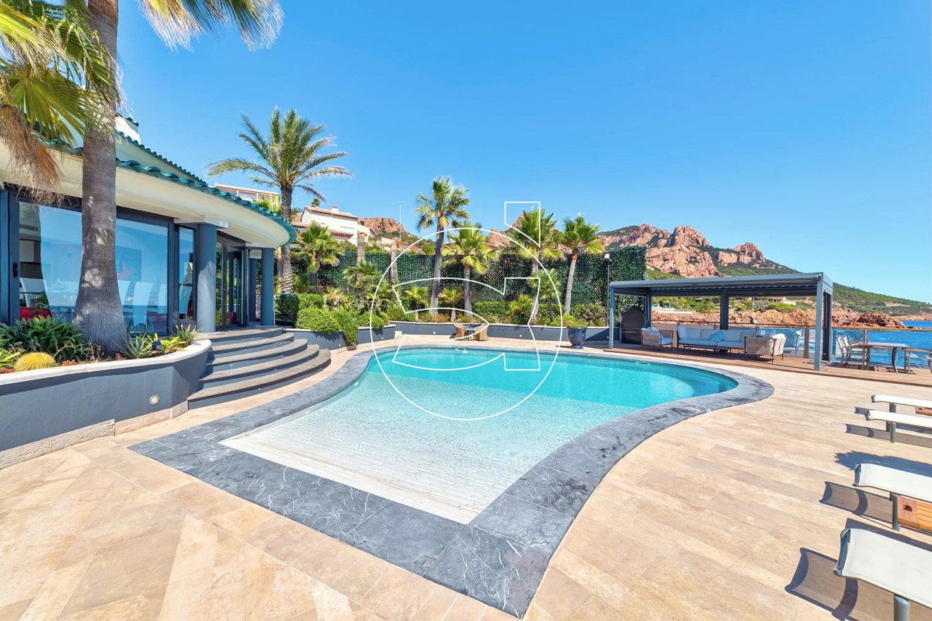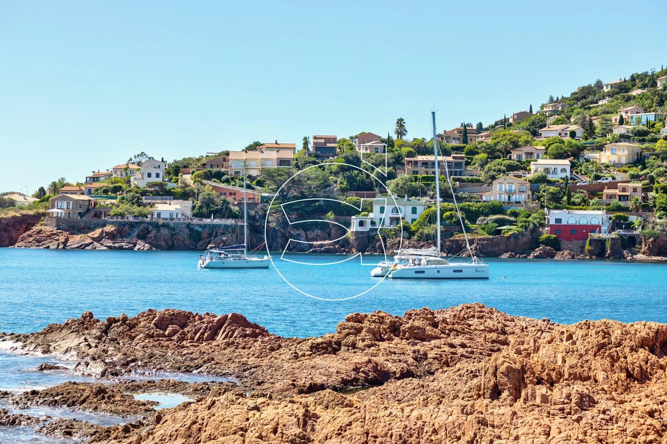 Mit dem Meer und den roten Esterelbergen im Hintergrund erstreckt sich diese Immobilie auf einer privaten Landzunge, wo Schönheit, Eleganz und Qualität in perfekter Harmonie aufeinandertreffen. Nur zehn Gehminuten vom malerischen Dorf Agay entfernt, bietet sie atemberaubende Ausblicke, die sowohl fesselnd als auch beruhigend sind.