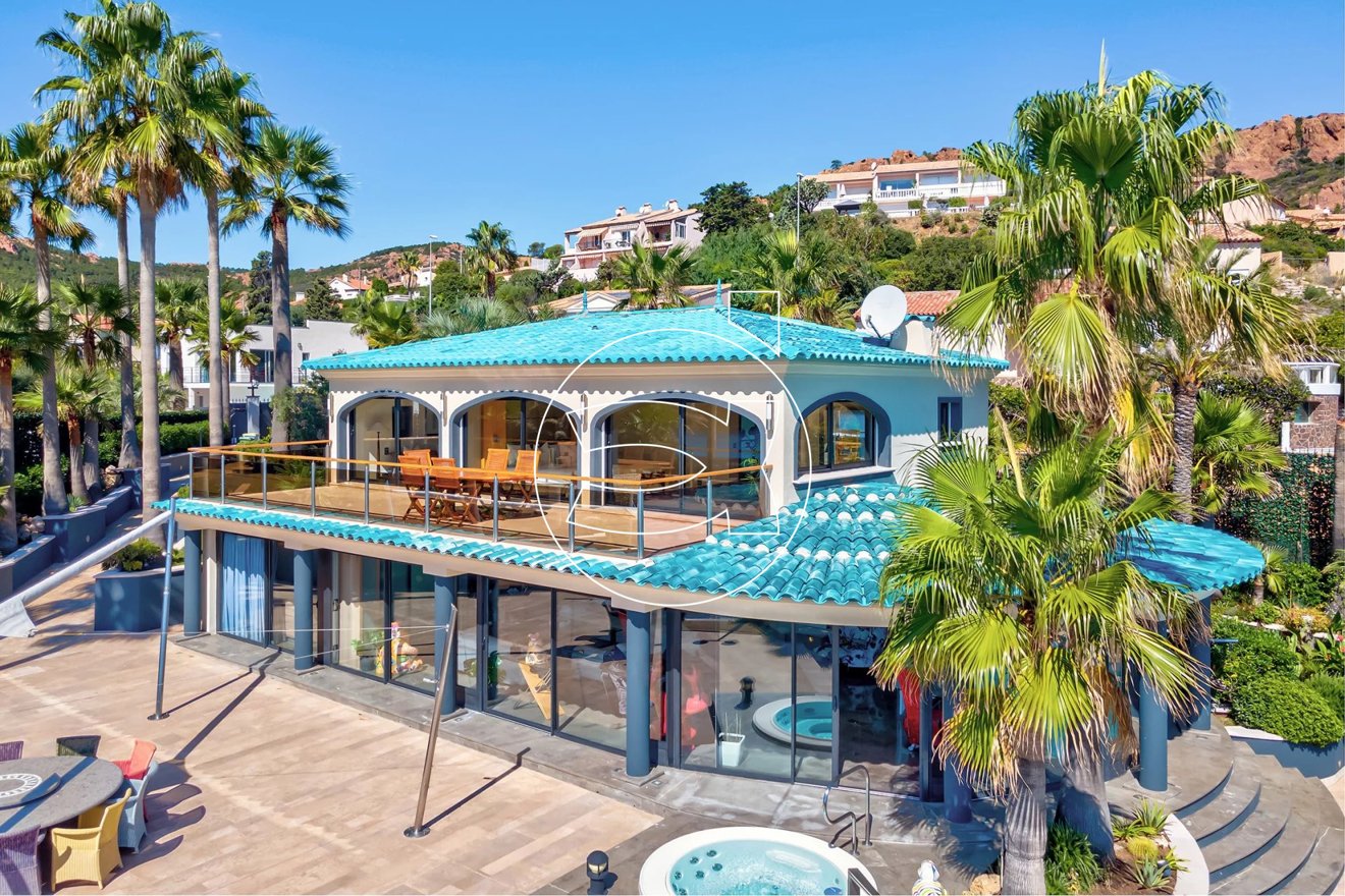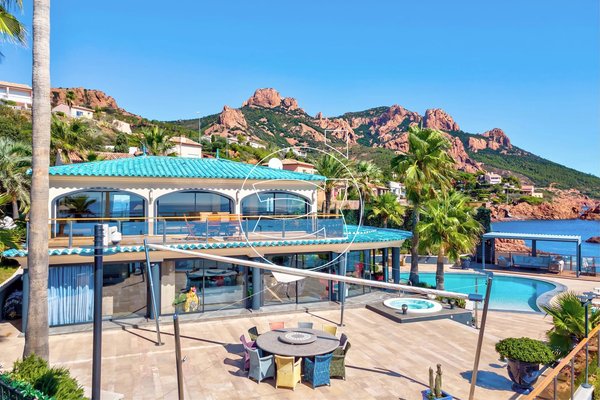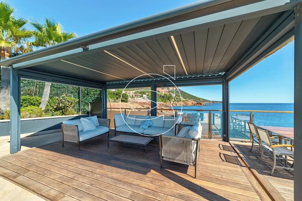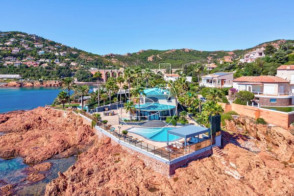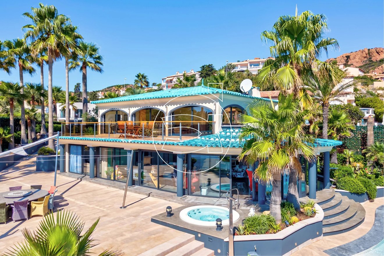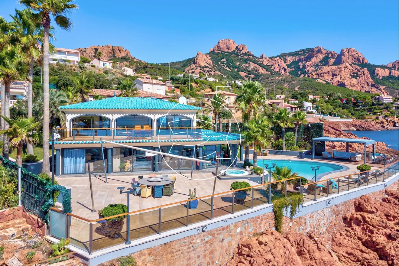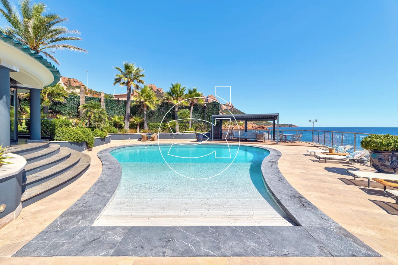 Mit dem Meer und den roten Esterelbergen im Hintergrund erstreckt sich diese Immobilie auf einer privaten Landzunge, wo Schönheit, Eleganz und Qualität in perfekter Harmonie aufeinandertreffen. Nur zehn Gehminuten vom malerischen Dorf Agay entfernt, bietet sie atemberaubende Ausblicke, die sowohl fesselnd als auch beruhigend sind.