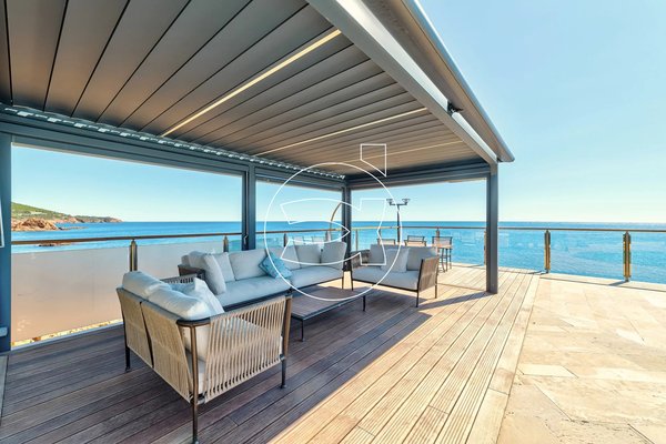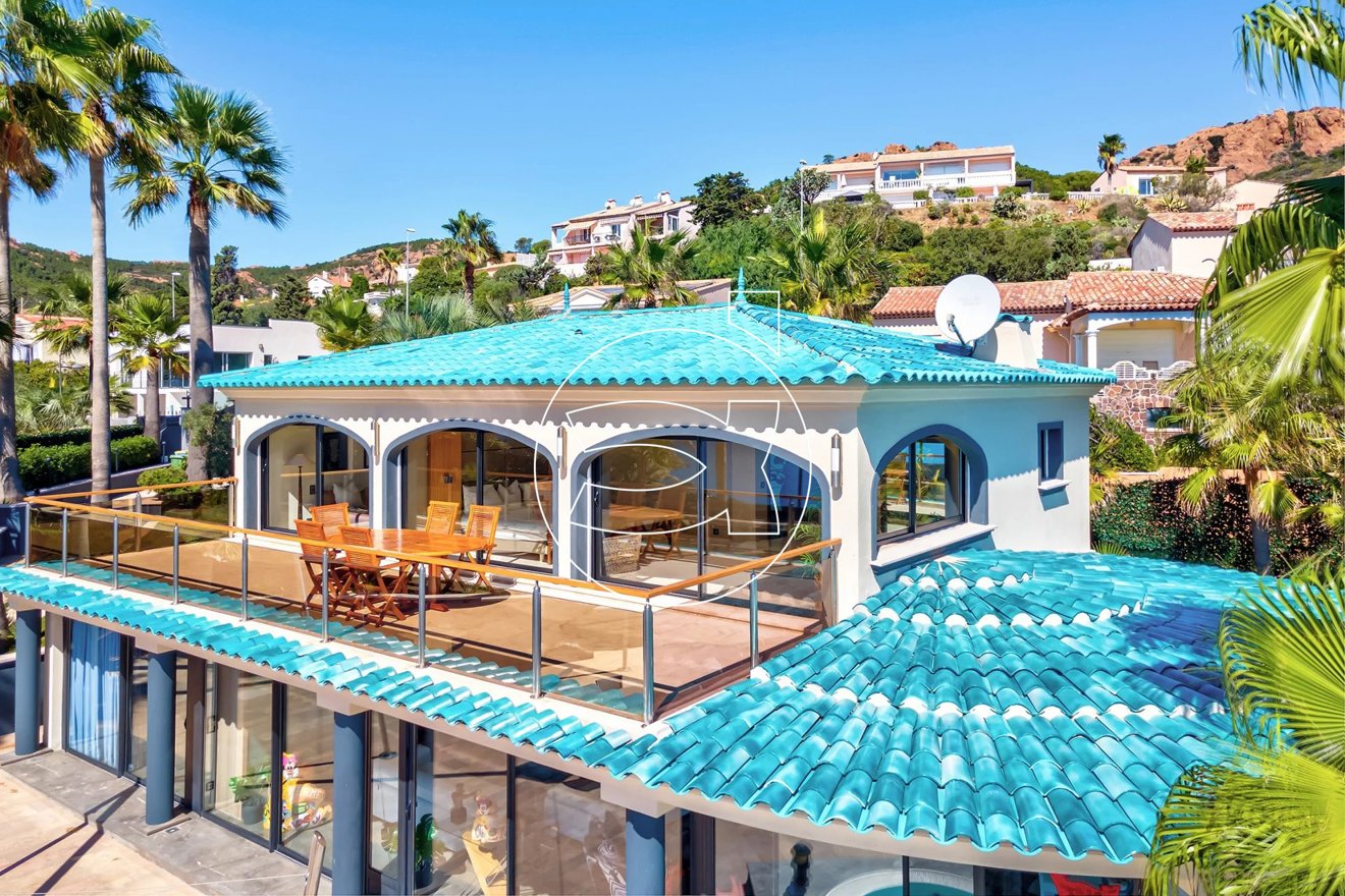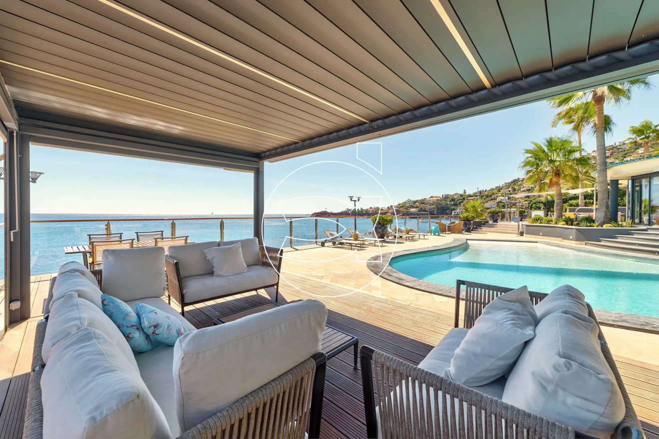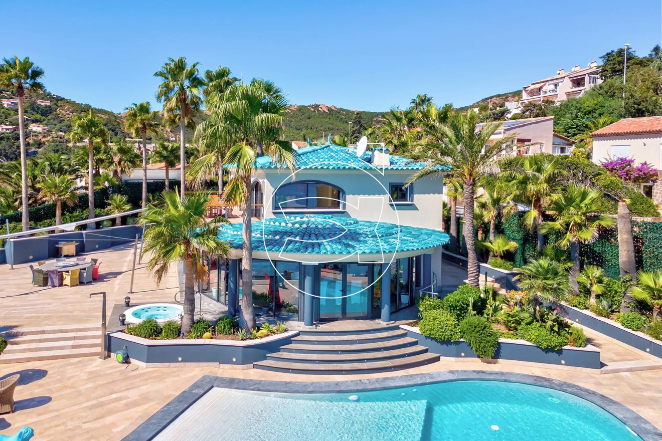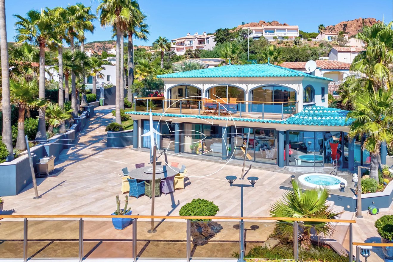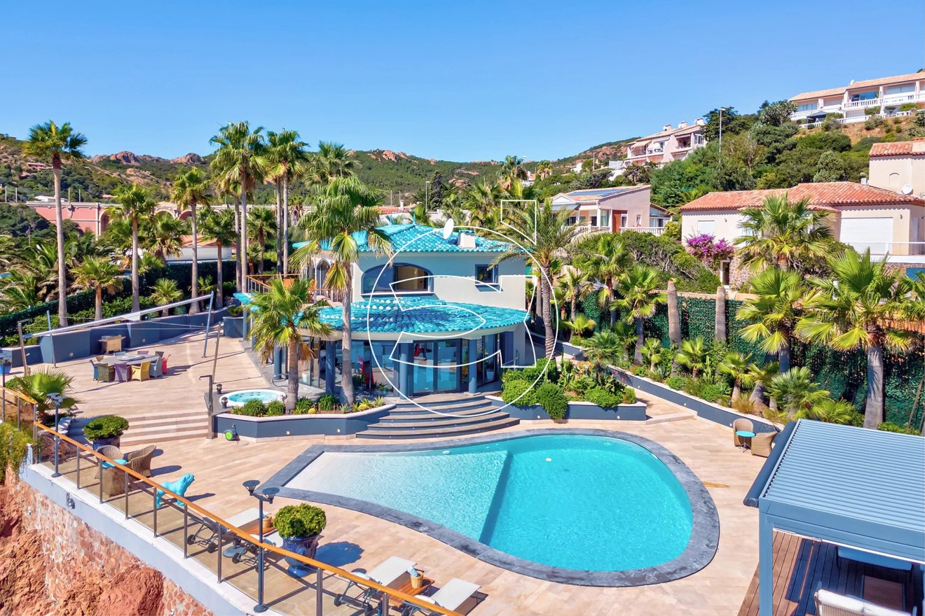 Mit dem Meer und den roten Esterelbergen im Hintergrund erstreckt sich diese Immobilie auf einer privaten Landzunge, wo Schönheit, Eleganz und Qualität in perfekter Harmonie aufeinandertreffen. Nur zehn Gehminuten vom malerischen Dorf Agay entfernt, bietet sie atemberaubende Ausblicke, die sowohl fesselnd als auch beruhigend sind.