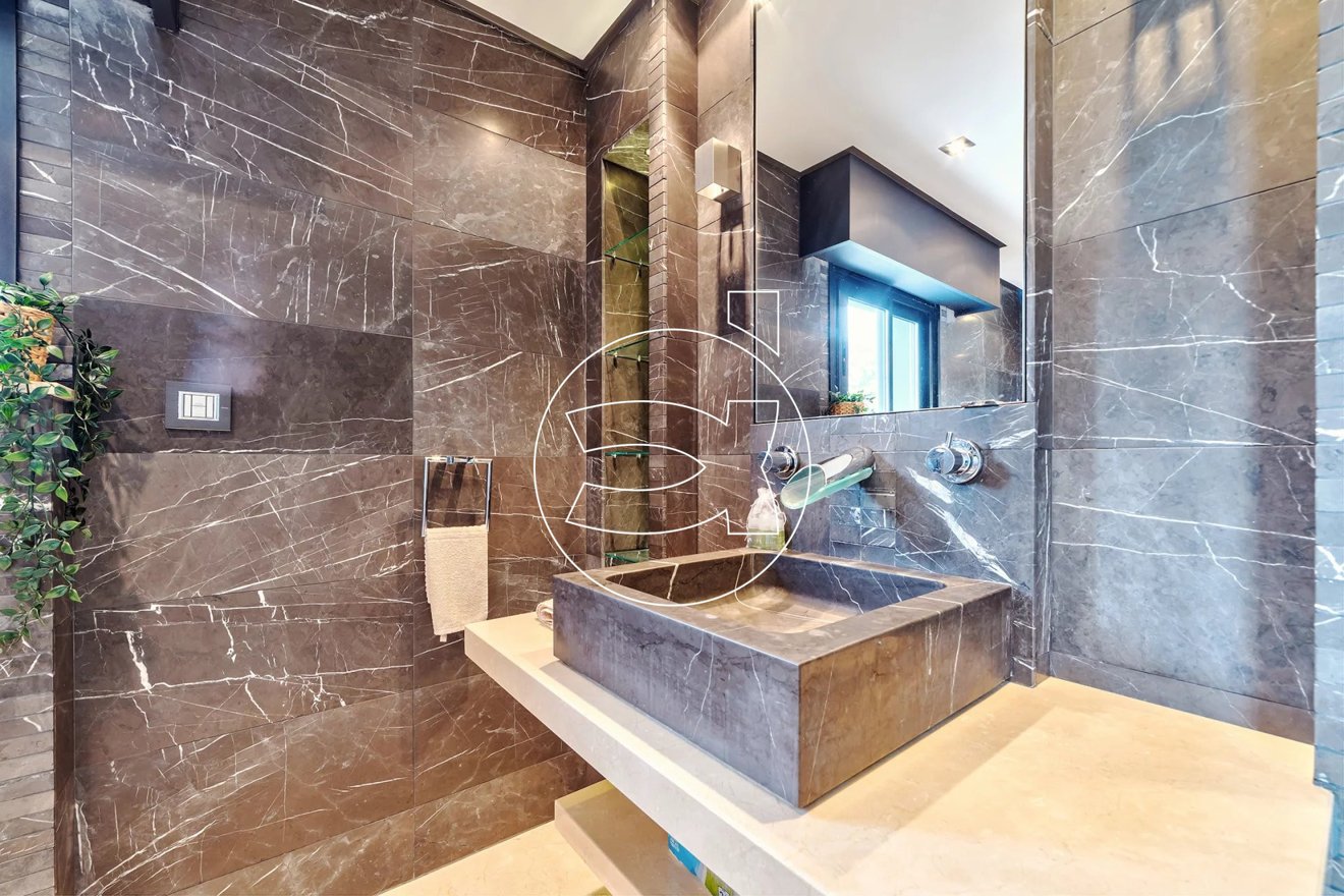 Die Villa verfügt über 224 m² Wohnfläche und besteht aus einem Hauptgebäude mit zwei Etagen, einem Keller und einem Carport. Der Haupteingang, der sich im ersten Stock befindet, öffnet sich zu einem geräumigen Wohnzimmer, einem Essbereich und einer offenen Küche – ideale Räume für gesellige Mahlzeiten mit Familie und Freunden. Auf derselben Etage befindet sich ein Schlafzimmer mit eigenem Bad, WC und einem Hammam/Sauna, mit direktem Zugang zur Terrasse und zum Pool.