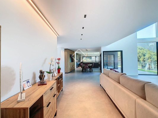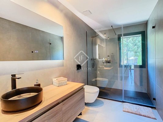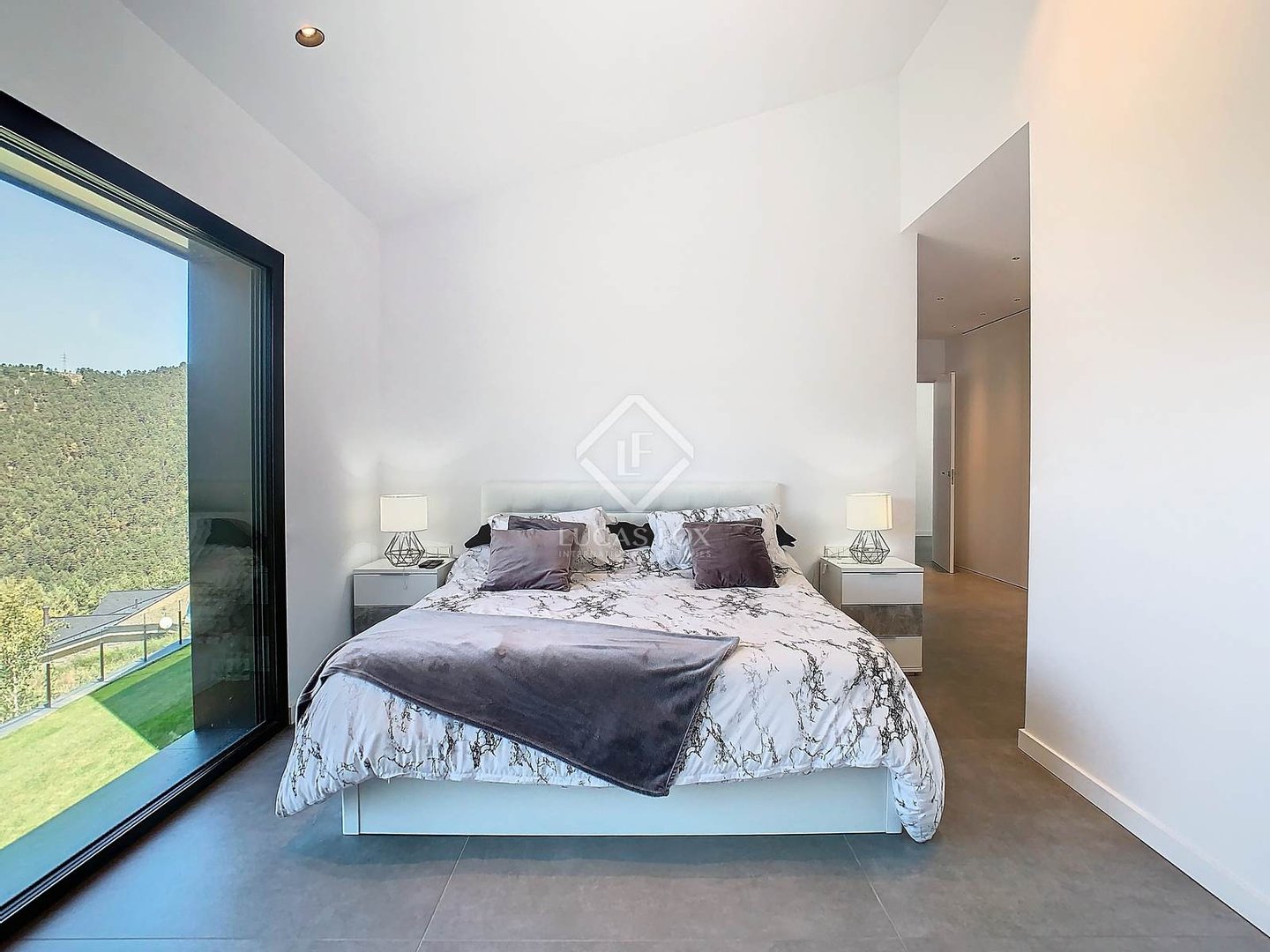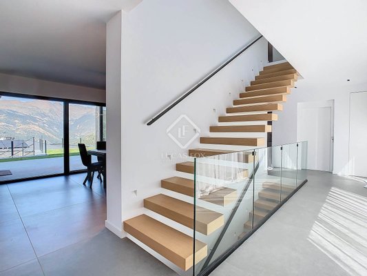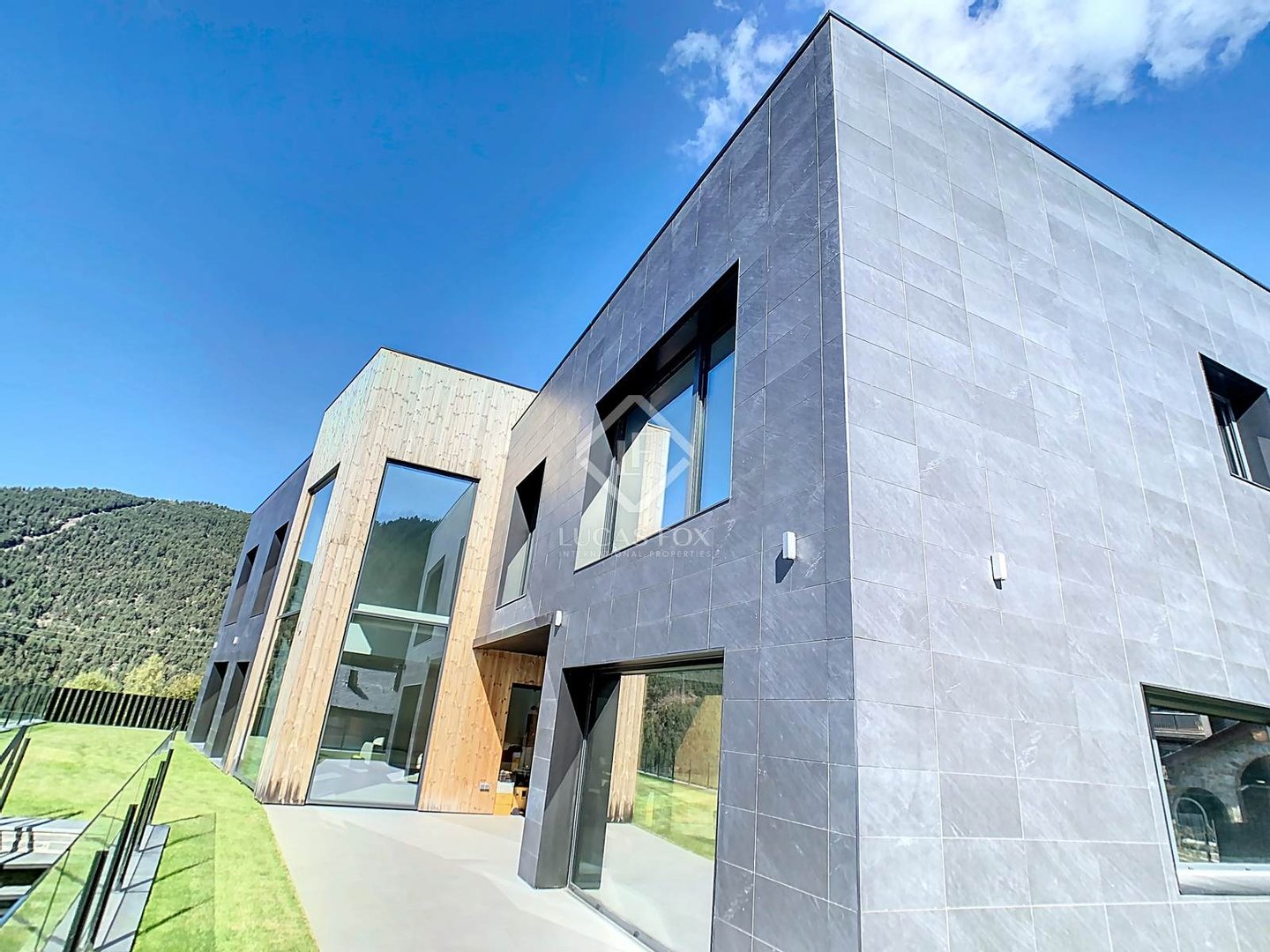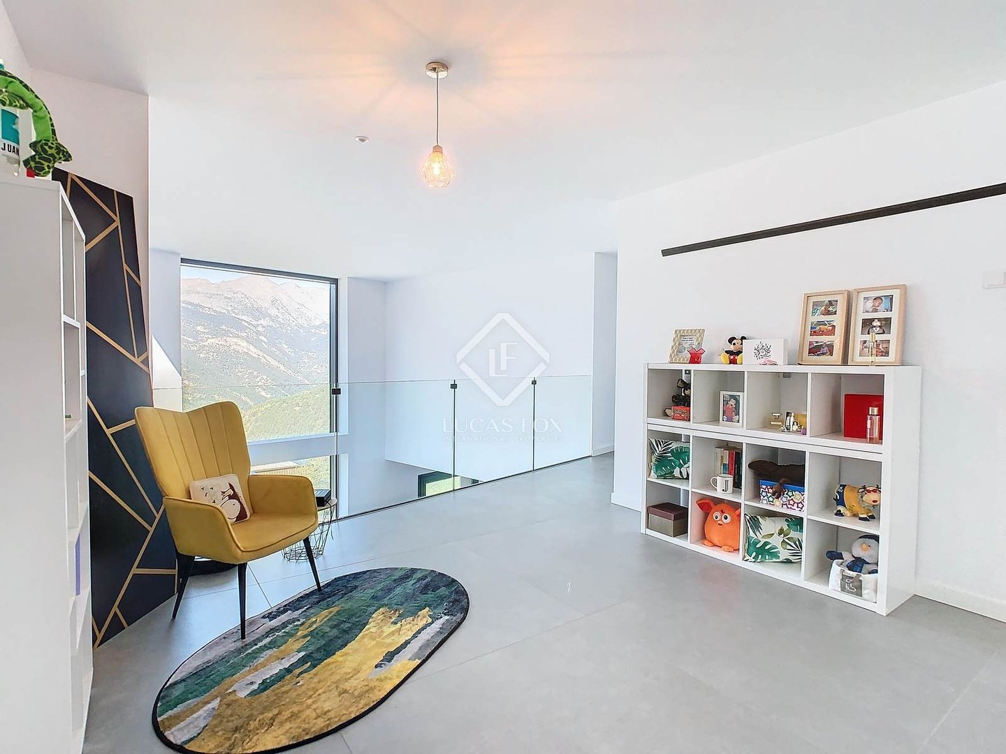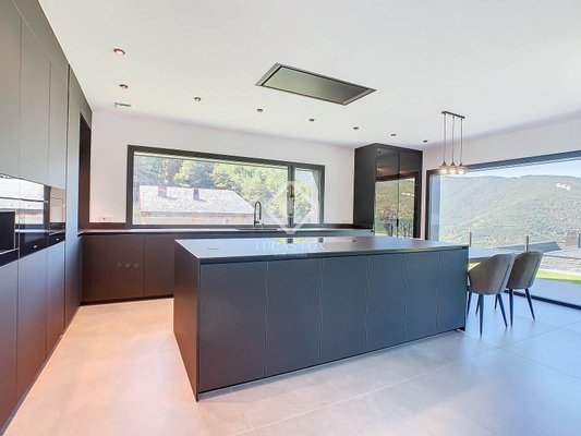 Lucas Fox präsentiert diese Villa hoch über Anyós, einer der exklusivsten Gegenden von La Massana. Seine privilegierte Lage bietet einen herrlichen Panoramablick, der sich über das gesamte Tal bis hin zum majestätischen Gipfel des Comapedrosa, dem höchsten Gipfel Andorras, erstreckt. Diese natürliche Umgebung ist sehr ruhig und dennoch in der Nähe der besten Annehmlichkeiten, Restaurants, Geschäfte, internationalen Schulen und nur 20 Minuten von Andorra la Vella entfernt. Dieses einzigartige Anwesen mit 1.677 m² bebauter Fläche auf einem 750 m² großen Grundstück verfügt über mehr als 448 m² private Gärten und Außenbereiche. Jeder Raum wurde sorgfältig gestaltet und mit den hochwertigsten Materialien kombiniert. So wurden zum Beispiel große graue Fliesen auf dem Boden verwendet und Marmordetails hinzugefügt. Wir betreten dieses Anwesen durch die Haupttür und finden die Eingangshalle mit einer schwebenden Holztreppe, einem großen Fenster an der Seite und Glasgeländer. Im Erdgeschoss , das als Tagesbereich genutzt wird, gibt es offene Räume, die dank großer Fenster mit natürlichem Licht gefüllt sind. Diese sind auch mit einem herrlichen 268 m² großen Garten und einer 29 m² großen Terrasse verbunden, die sich perfekt für Mahlzeiten im Freien eignet. Die offene Küche mit mattschwarzen Geräten ist mit hochwertigen Geräten und einer atemberaubenden Insel mit integriertem Tisch ausgestattet, die sich ideal für den täglichen Gebrauch eignet. Das Zentrum des Anwesens ist das moderne Wohn-Esszimmer mit doppelter Höhe , ideal zum Entspannen und Unterhalten. Auf dieser Etage befinden sich ein Gästezimmer mit eigenem Bad , eine große Waschküche und ein Gäste-WC, die alle sorgfältig gestaltet sind. Die erste Etage ist mit einer Fläche von 245 m² dem Nachtbereich gewidmet. Das Hauptschlafzimmer verfügt über ein großes Fenster, das natürliches Licht hereinlässt, sowie ein maßgefertigtes Ankleidezimmer und ein privates Badezimmer mit weißem Marmor verkleidet mit einer Designer-Badewanne und einer großen Dusche. Darüber hinaus befinden sich auf der Etage ein weiteres Schlafzimmer mit eigenem Bad und ein Ankleidezimmer sowie drei weitere Doppelzimmer, von denen eines derzeit als Büro genutzt wird, und ein komplettes Badezimmer, das ihnen dient. Ein heller Flur verbindet all diese Räume und blickt von einem Innenbalkon auf das Wohnzimmer, der sich ideal als Lesebereich eignet. Das 556 m² große Untergeschoss verfügt über eine Designerküche mit Arbeitsplatten aus italienischem Marmor und blauen Möbeln, die sich zu einem großzügigen Wohn-Esszimmer hin öffnet – ein intimer Rahmen, der sich perfekt für große Feiern eignet. Auf dieser Etage befindet sich ein Wellnessbereich, der durch eine Glaswand getrennt ist. Es beherbergt einen Pool aus weißem Marmor, der von raumhohen Fenstern mit Blick nach draußen umgeben ist. Angrenzend an den Pool befinden sich ein entspannender Whirlpool, eine Sauna und ein separater, verglaster Fitnessraum. Vom Pool gelangt man in den Garten. Auf dieser Etage befinden sich auch zwei geräumige Doppelzimmer, die sich ein komplettes Badezimmer teilen, ein Schlafzimmer für das Personal mit eigenem Badezimmer und ein Zimmer, das für die Hundepflege geeignet ist. Das Wohn-Esszimmer und der Spa-Bereich sind durch einen Umkleideraum mit Dusche und Bad verbunden. Schließlich gibt es noch die 629 m² große Etage , die eine geräumige Garage mit Platz für neun große Autos bietet, mit zusätzlichem Platz für kleinere Fahrzeuge, und einen großen Abstellraum, der für mehrere Zwecke genutzt werden kann, von einer Winterumkleidekabine bis hin zu einer Werkstatt. Von der Garage aus gelangt man in eine großzügige Eingangshalle, die mit einem Weinkeller, der derzeit als zusätzlicher Abstellraum genutzt wird, dem Maschinenraum, dem Zugang zum Treppenhaus und einem spektakulären Aufenthaltsraum verbunden ist. Dieser Raum verfügt über eine voll ausgestattete Küche mit einer Wet-Bar, einen Billardtisch und Platz für verschiedene Unterhaltungseinrichtungen. Auf einer etwas niedrigeren Ebene befindet sich ein Kinobereich mit Sofas und einer privaten Bowlingbahn. Die Etage wird durch ein Gäste-WC vervollständigt, das diese Ebene bedient. Diese Immobilie ist mit modernster Technologie ausgestattet, einschließlich eines geothermischen Systems und dreifach verglaster Fenster, für absoluten Komfort und unvergleichliche Energieeffizienz. Es umfasst auch Marmoroberflächen, großformatige Fliesen und Naturholzverkleidungen. Es ist komplett mit hochmodernen Hausautomationssystemen ausgestattet, mit denen Sie Ihre Heizung, Beleuchtung und Jalousien von Ihrem Mobiltelefon aus fernsteuern können. Kontaktieren Sie uns für weitere Informationen.
