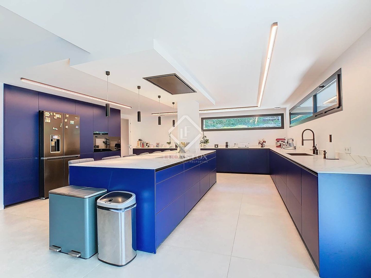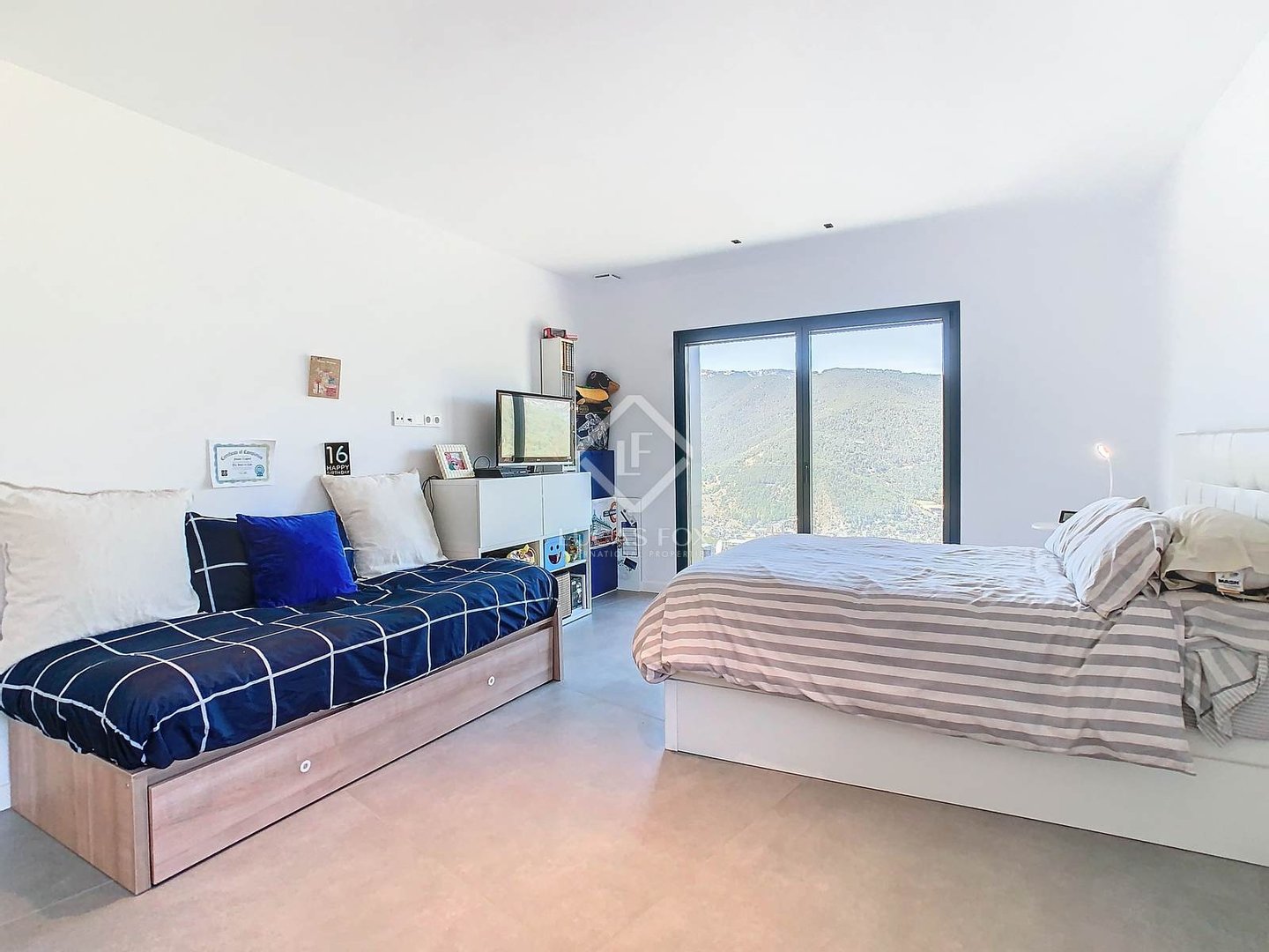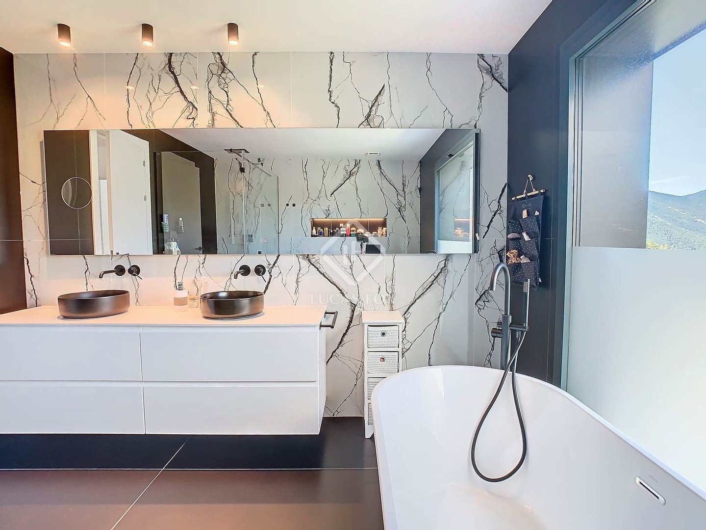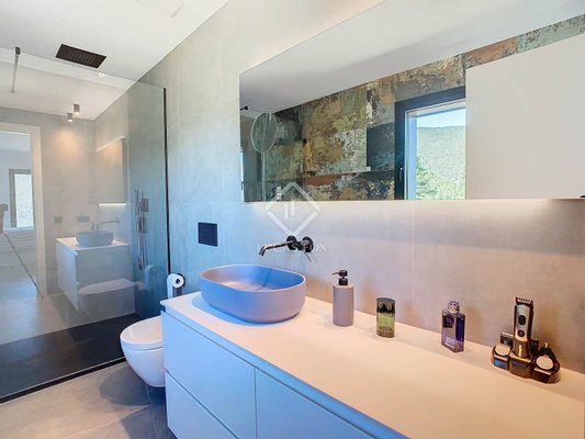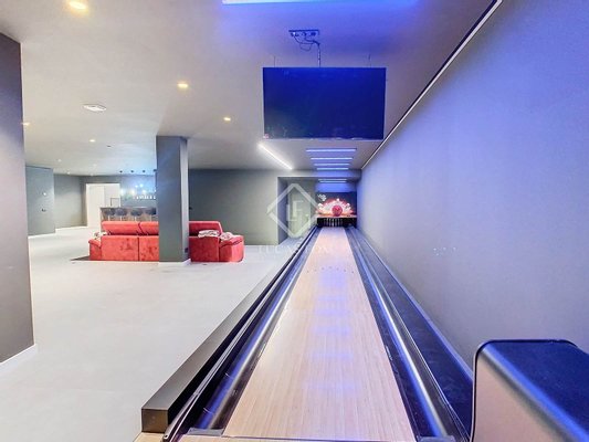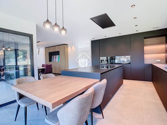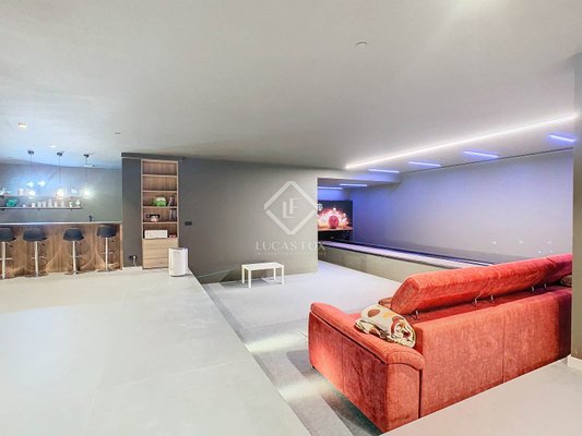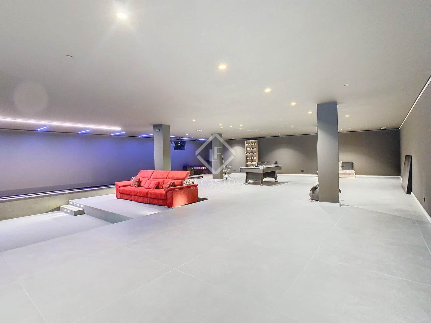 Lucas Fox präsentiert diese Villa hoch über Anyós, einer der exklusivsten Gegenden von La Massana. Seine privilegierte Lage bietet einen herrlichen Panoramablick, der sich über das gesamte Tal bis hin zum majestätischen Gipfel des Comapedrosa, dem höchsten Gipfel Andorras, erstreckt. Diese natürliche Umgebung ist sehr ruhig und dennoch in der Nähe der besten Annehmlichkeiten, Restaurants, Geschäfte, internationalen Schulen und nur 20 Minuten von Andorra la Vella entfernt. Dieses einzigartige Anwesen mit 1.677 m² bebauter Fläche auf einem 750 m² großen Grundstück verfügt über mehr als 448 m² private Gärten und Außenbereiche. Jeder Raum wurde sorgfältig gestaltet und mit den hochwertigsten Materialien kombiniert. So wurden zum Beispiel große graue Fliesen auf dem Boden verwendet und Marmordetails hinzugefügt. Wir betreten dieses Anwesen durch die Haupttür und finden die Eingangshalle mit einer schwebenden Holztreppe, einem großen Fenster an der Seite und Glasgeländer. Im Erdgeschoss , das als Tagesbereich genutzt wird, gibt es offene Räume, die dank großer Fenster mit natürlichem Licht gefüllt sind. Diese sind auch mit einem herrlichen 268 m² großen Garten und einer 29 m² großen Terrasse verbunden, die sich perfekt für Mahlzeiten im Freien eignet. Die offene Küche mit mattschwarzen Geräten ist mit hochwertigen Geräten und einer atemberaubenden Insel mit integriertem Tisch ausgestattet, die sich ideal für den täglichen Gebrauch eignet. Das Zentrum des Anwesens ist das moderne Wohn-Esszimmer mit doppelter Höhe , ideal zum Entspannen und Unterhalten. Auf dieser Etage befinden sich ein Gästezimmer mit eigenem Bad , eine große Waschküche und ein Gäste-WC, die alle sorgfältig gestaltet sind. Die erste Etage ist mit einer Fläche von 245 m² dem Nachtbereich gewidmet. Das Hauptschlafzimmer verfügt über ein großes Fenster, das natürliches Licht hereinlässt, sowie ein maßgefertigtes Ankleidezimmer und ein privates Badezimmer mit weißem Marmor verkleidet mit einer Designer-Badewanne und einer großen Dusche. Darüber hinaus befinden sich auf der Etage ein weiteres Schlafzimmer mit eigenem Bad und ein Ankleidezimmer sowie drei weitere Doppelzimmer, von denen eines derzeit als Büro genutzt wird, und ein komplettes Badezimmer, das ihnen dient. Ein heller Flur verbindet all diese Räume und blickt von einem Innenbalkon auf das Wohnzimmer, der sich ideal als Lesebereich eignet. Das 556 m² große Untergeschoss verfügt über eine Designerküche mit Arbeitsplatten aus italienischem Marmor und blauen Möbeln, die sich zu einem großzügigen Wohn-Esszimmer hin öffnet – ein intimer Rahmen, der sich perfekt für große Feiern eignet. Auf dieser Etage befindet sich ein Wellnessbereich, der durch eine Glaswand getrennt ist. Es beherbergt einen Pool aus weißem Marmor, der von raumhohen Fenstern mit Blick nach draußen umgeben ist. Angrenzend an den Pool befinden sich ein entspannender Whirlpool, eine Sauna und ein separater, verglaster Fitnessraum. Vom Pool gelangt man in den Garten. Auf dieser Etage befinden sich auch zwei geräumige Doppelzimmer, die sich ein komplettes Badezimmer teilen, ein Schlafzimmer für das Personal mit eigenem Badezimmer und ein Zimmer, das für die Hundepflege geeignet ist. Das Wohn-Esszimmer und der Spa-Bereich sind durch einen Umkleideraum mit Dusche und Bad verbunden. Schließlich gibt es noch die 629 m² große Etage , die eine geräumige Garage mit Platz für neun große Autos bietet, mit zusätzlichem Platz für kleinere Fahrzeuge, und einen großen Abstellraum, der für mehrere Zwecke genutzt werden kann, von einer Winterumkleidekabine bis hin zu einer Werkstatt. Von der Garage aus gelangt man in eine großzügige Eingangshalle, die mit einem Weinkeller, der derzeit als zusätzlicher Abstellraum genutzt wird, dem Maschinenraum, dem Zugang zum Treppenhaus und einem spektakulären Aufenthaltsraum verbunden ist. Dieser Raum verfügt über eine voll ausgestattete Küche mit einer Wet-Bar, einen Billardtisch und Platz für verschiedene Unterhaltungseinrichtungen. Auf einer etwas niedrigeren Ebene befindet sich ein Kinobereich mit Sofas und einer privaten Bowlingbahn. Die Etage wird durch ein Gäste-WC vervollständigt, das diese Ebene bedient. Diese Immobilie ist mit modernster Technologie ausgestattet, einschließlich eines geothermischen Systems und dreifach verglaster Fenster, für absoluten Komfort und unvergleichliche Energieeffizienz. Es umfasst auch Marmoroberflächen, großformatige Fliesen und Naturholzverkleidungen. Es ist komplett mit hochmodernen Hausautomationssystemen ausgestattet, mit denen Sie Ihre Heizung, Beleuchtung und Jalousien von Ihrem Mobiltelefon aus fernsteuern können. Kontaktieren Sie uns für weitere Informationen.