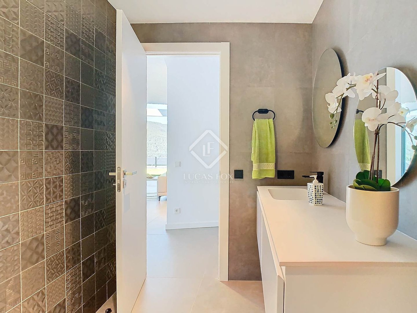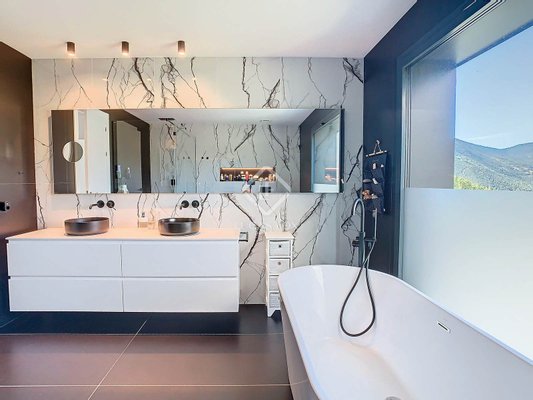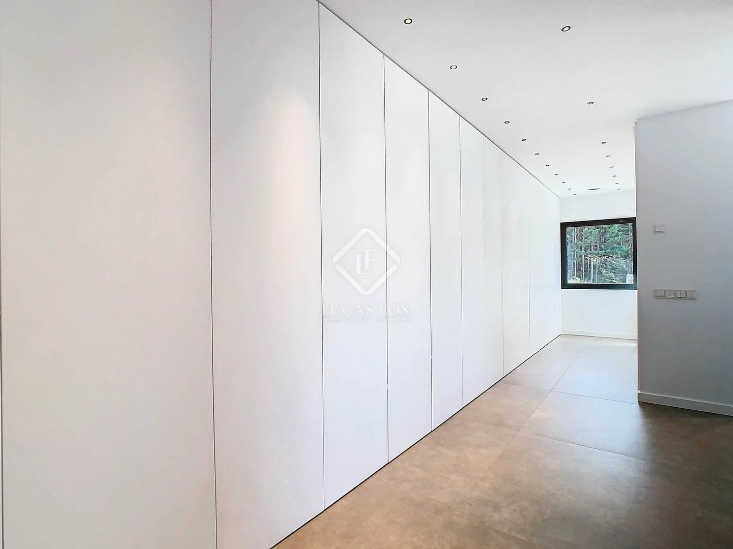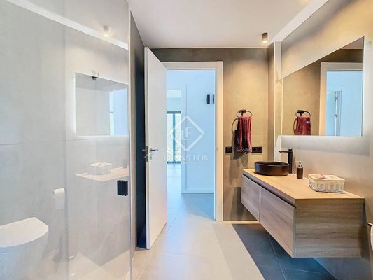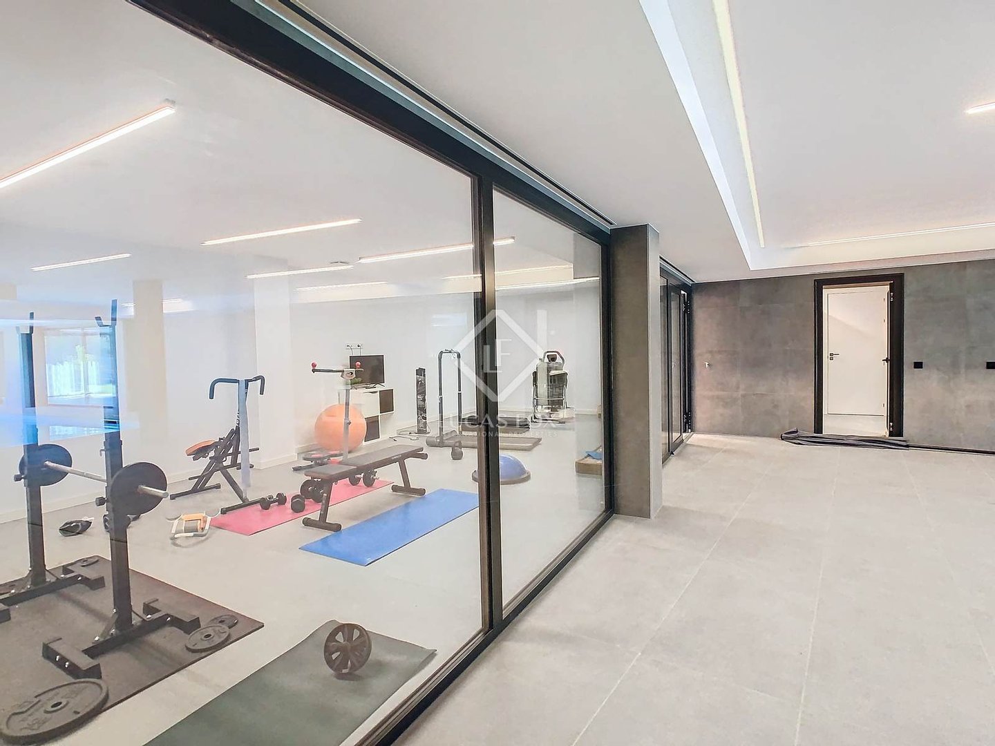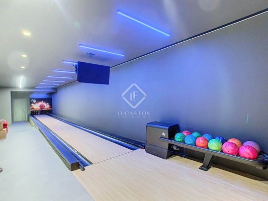 Lucas Fox präsentiert diese Villa hoch über Anyós, einer der exklusivsten Gegenden von La Massana. Seine privilegierte Lage bietet einen herrlichen Panoramablick, der sich über das gesamte Tal bis hin zum majestätischen Gipfel des Comapedrosa, dem höchsten Gipfel Andorras, erstreckt. Diese natürliche Umgebung ist sehr ruhig und dennoch in der Nähe der besten Annehmlichkeiten, Restaurants, Geschäfte, internationalen Schulen und nur 20 Minuten von Andorra la Vella entfernt. Dieses einzigartige Anwesen mit 1.677 m² bebauter Fläche auf einem 750 m² großen Grundstück verfügt über mehr als 448 m² private Gärten und Außenbereiche. Jeder Raum wurde sorgfältig gestaltet und mit den hochwertigsten Materialien kombiniert. So wurden zum Beispiel große graue Fliesen auf dem Boden verwendet und Marmordetails hinzugefügt. Wir betreten dieses Anwesen durch die Haupttür und finden die Eingangshalle mit einer schwebenden Holztreppe, einem großen Fenster an der Seite und Glasgeländer. Im Erdgeschoss , das als Tagesbereich genutzt wird, gibt es offene Räume, die dank großer Fenster mit natürlichem Licht gefüllt sind. Diese sind auch mit einem herrlichen 268 m² großen Garten und einer 29 m² großen Terrasse verbunden, die sich perfekt für Mahlzeiten im Freien eignet. Die offene Küche mit mattschwarzen Geräten ist mit hochwertigen Geräten und einer atemberaubenden Insel mit integriertem Tisch ausgestattet, die sich ideal für den täglichen Gebrauch eignet. Das Zentrum des Anwesens ist das moderne Wohn-Esszimmer mit doppelter Höhe , ideal zum Entspannen und Unterhalten. Auf dieser Etage befinden sich ein Gästezimmer mit eigenem Bad , eine große Waschküche und ein Gäste-WC, die alle sorgfältig gestaltet sind. Die erste Etage ist mit einer Fläche von 245 m² dem Nachtbereich gewidmet. Das Hauptschlafzimmer verfügt über ein großes Fenster, das natürliches Licht hereinlässt, sowie ein maßgefertigtes Ankleidezimmer und ein privates Badezimmer mit weißem Marmor verkleidet mit einer Designer-Badewanne und einer großen Dusche. Darüber hinaus befinden sich auf der Etage ein weiteres Schlafzimmer mit eigenem Bad und ein Ankleidezimmer sowie drei weitere Doppelzimmer, von denen eines derzeit als Büro genutzt wird, und ein komplettes Badezimmer, das ihnen dient. Ein heller Flur verbindet all diese Räume und blickt von einem Innenbalkon auf das Wohnzimmer, der sich ideal als Lesebereich eignet. Das 556 m² große Untergeschoss verfügt über eine Designerküche mit Arbeitsplatten aus italienischem Marmor und blauen Möbeln, die sich zu einem großzügigen Wohn-Esszimmer hin öffnet – ein intimer Rahmen, der sich perfekt für große Feiern eignet. Auf dieser Etage befindet sich ein Wellnessbereich, der durch eine Glaswand getrennt ist. Es beherbergt einen Pool aus weißem Marmor, der von raumhohen Fenstern mit Blick nach draußen umgeben ist. Angrenzend an den Pool befinden sich ein entspannender Whirlpool, eine Sauna und ein separater, verglaster Fitnessraum. Vom Pool gelangt man in den Garten. Auf dieser Etage befinden sich auch zwei geräumige Doppelzimmer, die sich ein komplettes Badezimmer teilen, ein Schlafzimmer für das Personal mit eigenem Badezimmer und ein Zimmer, das für die Hundepflege geeignet ist. Das Wohn-Esszimmer und der Spa-Bereich sind durch einen Umkleideraum mit Dusche und Bad verbunden. Schließlich gibt es noch die 629 m² große Etage , die eine geräumige Garage mit Platz für neun große Autos bietet, mit zusätzlichem Platz für kleinere Fahrzeuge, und einen großen Abstellraum, der für mehrere Zwecke genutzt werden kann, von einer Winterumkleidekabine bis hin zu einer Werkstatt. Von der Garage aus gelangt man in eine großzügige Eingangshalle, die mit einem Weinkeller, der derzeit als zusätzlicher Abstellraum genutzt wird, dem Maschinenraum, dem Zugang zum Treppenhaus und einem spektakulären Aufenthaltsraum verbunden ist. Dieser Raum verfügt über eine voll ausgestattete Küche mit einer Wet-Bar, einen Billardtisch und Platz für verschiedene Unterhaltungseinrichtungen. Auf einer etwas niedrigeren Ebene befindet sich ein Kinobereich mit Sofas und einer privaten Bowlingbahn. Die Etage wird durch ein Gäste-WC vervollständigt, das diese Ebene bedient. Diese Immobilie ist mit modernster Technologie ausgestattet, einschließlich eines geothermischen Systems und dreifach verglaster Fenster, für absoluten Komfort und unvergleichliche Energieeffizienz. Es umfasst auch Marmoroberflächen, großformatige Fliesen und Naturholzverkleidungen. Es ist komplett mit hochmodernen Hausautomationssystemen ausgestattet, mit denen Sie Ihre Heizung, Beleuchtung und Jalousien von Ihrem Mobiltelefon aus fernsteuern können. Kontaktieren Sie uns für weitere Informationen.