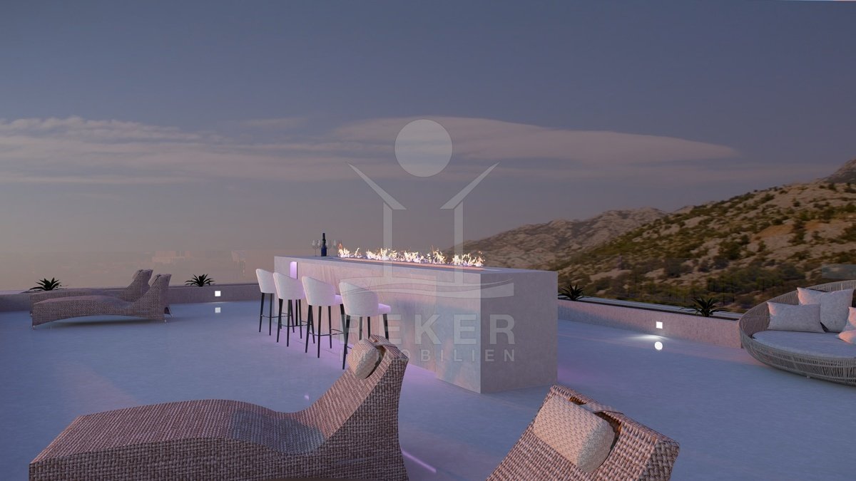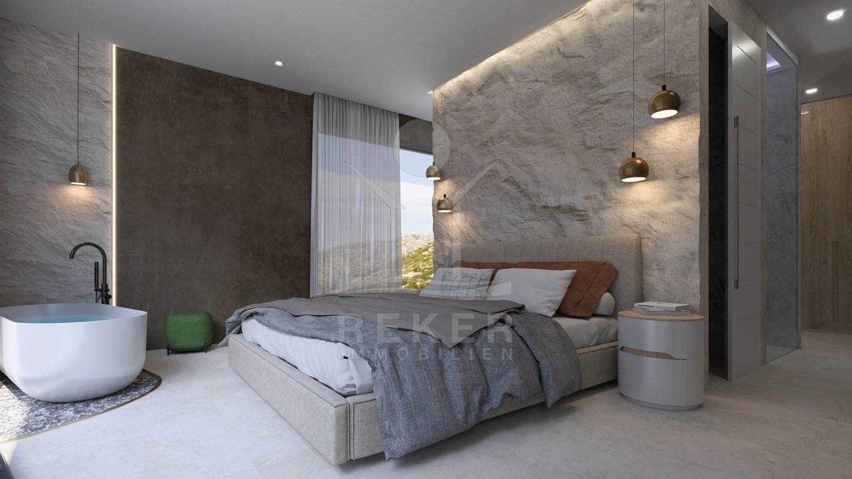 Diese Neubau Luxusvilla ist eine wahre Perle, die in Top-Lage mit einem freien Panorama-Meerblick besticht. Erleben Sie ultimativen Luxus und Komfort mit erstklassigen Ausstattungsmerkmalen wie einem Infinity-Pool, der sich perfekt in die Umgebung einfügt und einen atemberaubenden Blick auf das Meer und die Landschaft bietet. Entspannen Sie im Überlaufpool, der Sauna oder dem Fitnessbereich – hier wird Ihr Wohlbefinden zur Priorität. Inspiriert vom Nationalpark Paklenica und gestaltet mit zeitgemäßem Design und hochwertigen Details, ist diese Villa eine hervorragende Investition für Urlaub und Vergnügen an der wunderschönen adriatischen Küste.