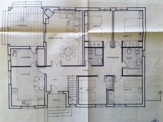 Dieses einstöckige Haus gliedert sich in 4 Doppelzimmer, 1 Duschbad und 1 Badezimmer auf. Beim Eintreten in den Flur befinden sich die Schlafzimmer auf der rechten Seite, die eingerichtete unabhängige Küche mit Waschküche auf der linken Seite und das