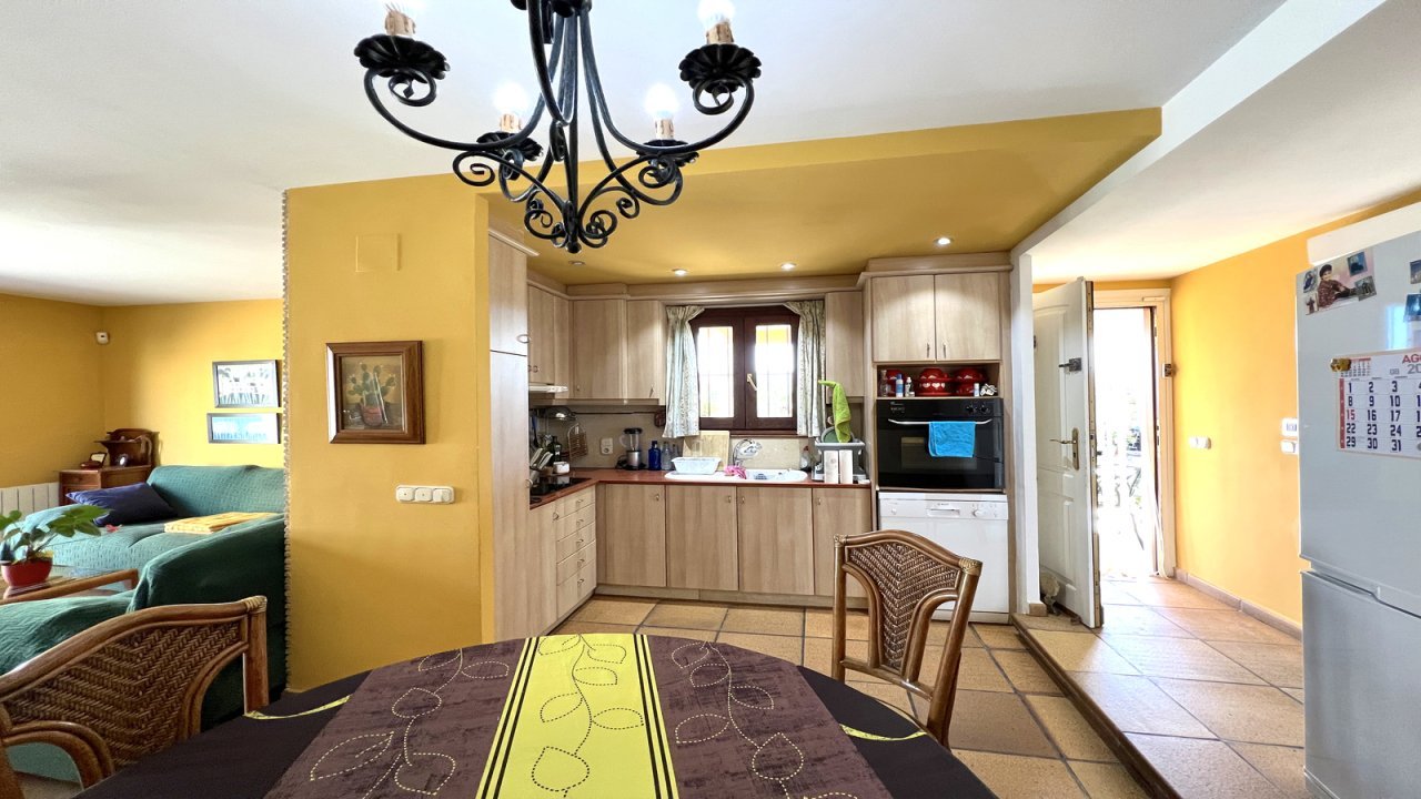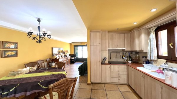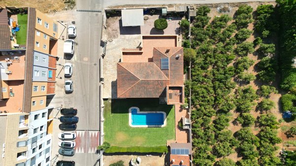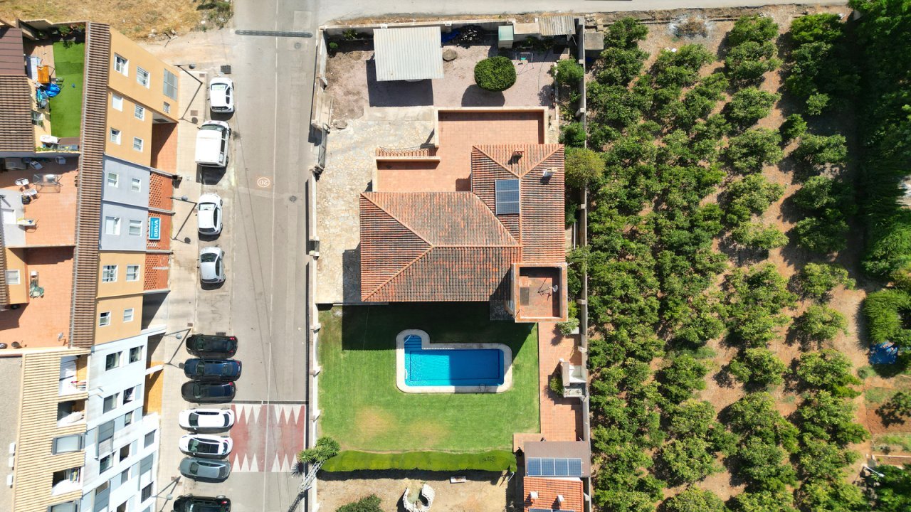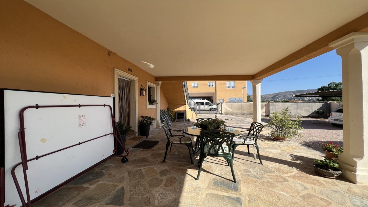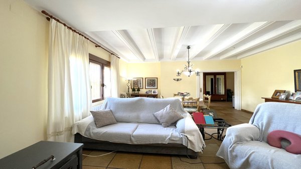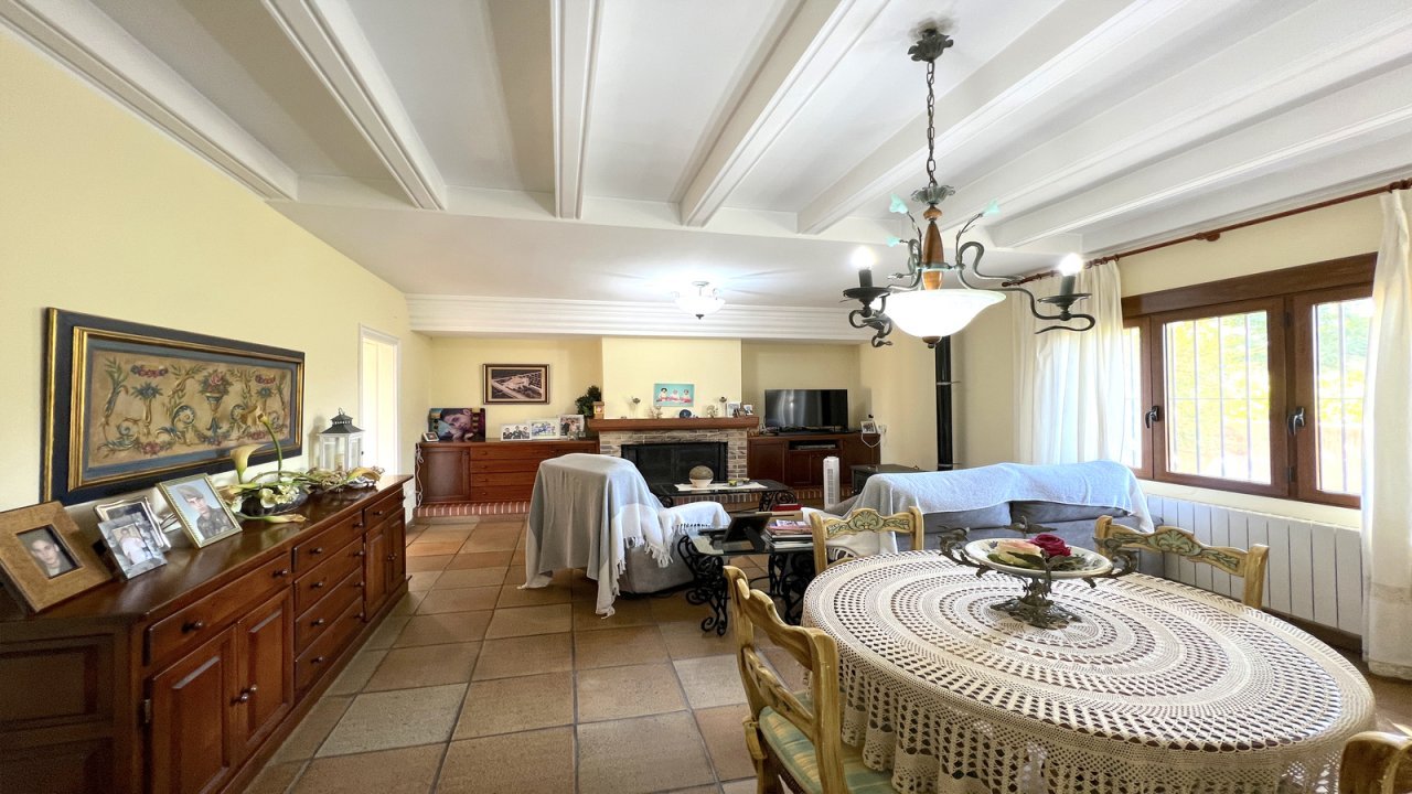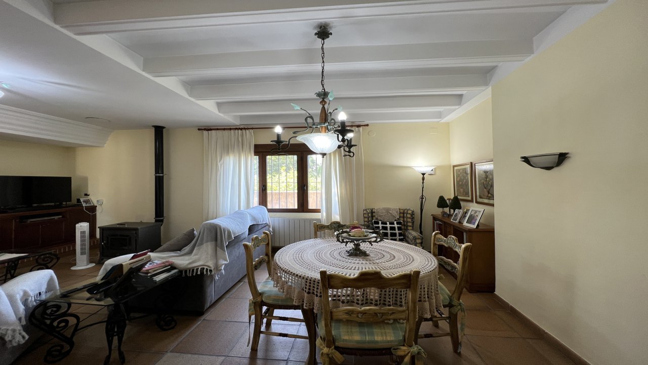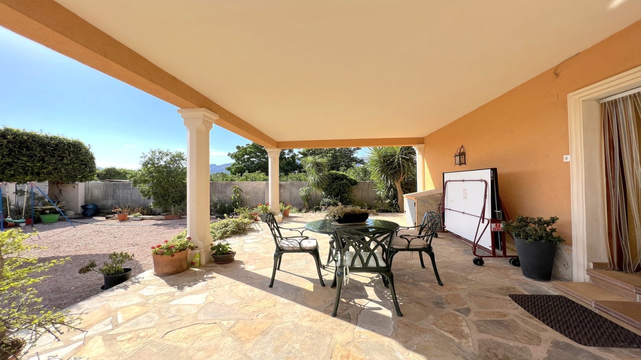 Diese Villa / Stadthaus in der Nähe von Ondara liegt auf einem ca.1.800m² Grundstück und hat eine Wohnfläche von 320m², die sich über zwei Ebenen erstreckt. Im Erdgeschoss befindet sich ein helles Wohn-Esszimmer mit offener Küche und Ausgang zu einer überdachten Terrasse, ein weiteres geräumiges Wohnzimmer mit Kamin und eine weitere Küche. Von dem Flur aus hat man Zugang zu den 4 Schlafzimmern mit Einbauschränken, einem Familien Badezimmer und einer Gäste Toilette. Über eine Innentreppe, aber auch durch eine Außen Treppe kommt man in die obere Etage, die sich noch im Rohbau befindet. Mit 3 separaten Räumen, die noch nach persönlichem Geschmack gestaltet werden können. Hier kann man noch seinen Wünschen freien Lauf lassen. Von einer XXL großen Sonnenterasse genießt einen weiten Blick auf die Berge, die Landschaft und das Dorf. Es gibt einen großen Pool der von einer großen Sonnenterrasse umgeben ist. Ein separates BBQ-Haus mit einer Sommerküche, Außendusche und Außen WC, sind nur wenige Schritte vom Pool entfernt. In einem Teil des Gartens befinden sich verschiedene Obstbäume. Der Carport bietet Platz für 2 PKW´s, sowie weitere Parkmöglichleiten. Das Haus hat eine Gaszentralheizung. Es besteht auch die Möglichkeit das Haus zu vergrößern, da es sich bei dem Grundstück um komplett bebaubares Land handelt. Daher ist das Objekt auch für Bauträger interessant.