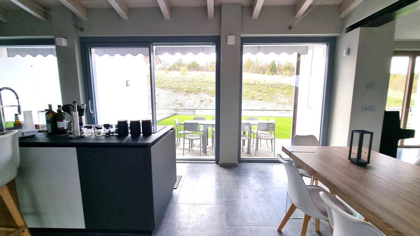 The house is equipped with state-of-the-art technology, including a 9 kW photovoltaic system to generate electricity, a charging station for electric vehicles, efficient underfloor heating with a heat pump and condensing boiler, a state-of-the-art