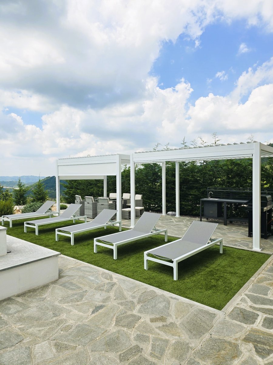 The house is equipped with state-of-the-art technology, including a 9 kW photovoltaic system to generate electricity, a charging station for electric vehicles, efficient underfloor heating with a heat pump and condensing boiler, a state-of-the-art video surveillance system with infrared cameras and an additional alarm system for greater security.The outdoor area has been designed with tranquil Zen gardens, majestic olive trees and unobstructed views of the rolling hills and the Alps. At the rear, you'll find a private oasis featuring a salt-water pool, a heated Jacuzzi, and a charming patio with a BBQ area—perfect for al fresco dining and entertaining