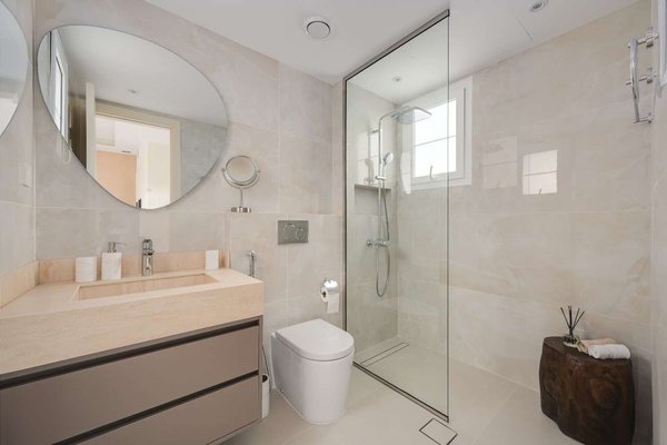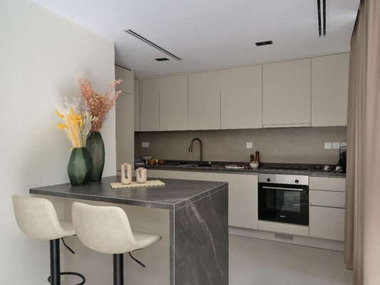 Willkommen in diesem einzigartigen Reihenhaus, das mit stilvoll gestalteten Innenräumen beeindruckt. Künstlerische Akzente und hochwertige natürliche Materialien wie Marmor, Holz und Stein schaffen eine warme und einladende Atmosphäre. Die europäischen Küchengeräte und die atemberaubenden Oberflächen aus Naturholz lassen keine Wünsche offen.