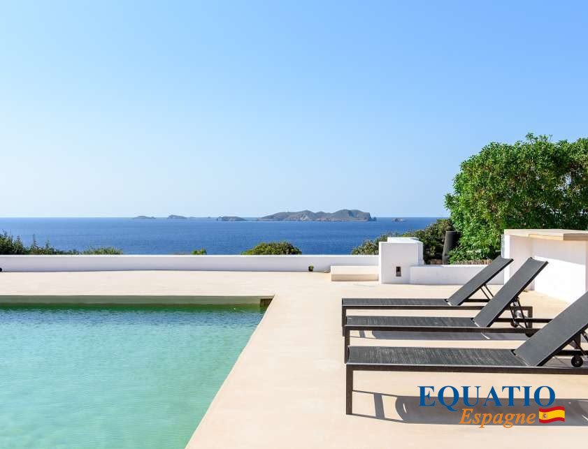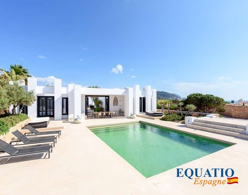 Nestled on the picturesque west coast of the island of Ibiza, Modern Villa of 417 m² of living space on one level, with a BREATHTAKING SEA VIEW, located on the 1st line of the sea.