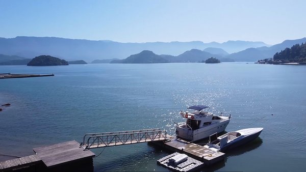 Die Anlegestelle verfügt über einen Tiefgang für große Boote, und die Nähe des Flughafens erleichtert die An- und Abreise von Flugzeugen.