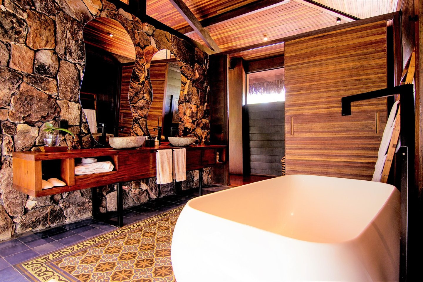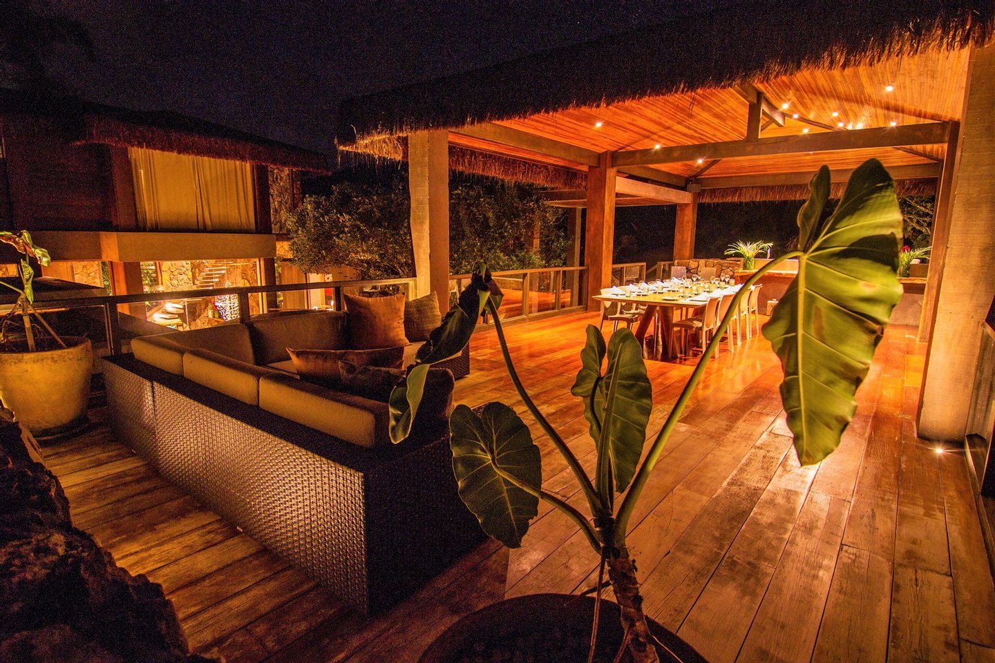 Der Komplex besteht aus einem Haupthaus mit 2 Suiten und raffinierten Umgebungen. 3 Bungalows mit Meerblick verbinden sich mit dem Haupthaus über einen Weg durch die Landschaftsgestaltung, der zum Bootshaus am Strand führt. Der komfortable und anspruchsvolle Gemeinschaftsbereich bietet Privatsphäre und Genuss mit Terrasse mit Essbereich und Grill.