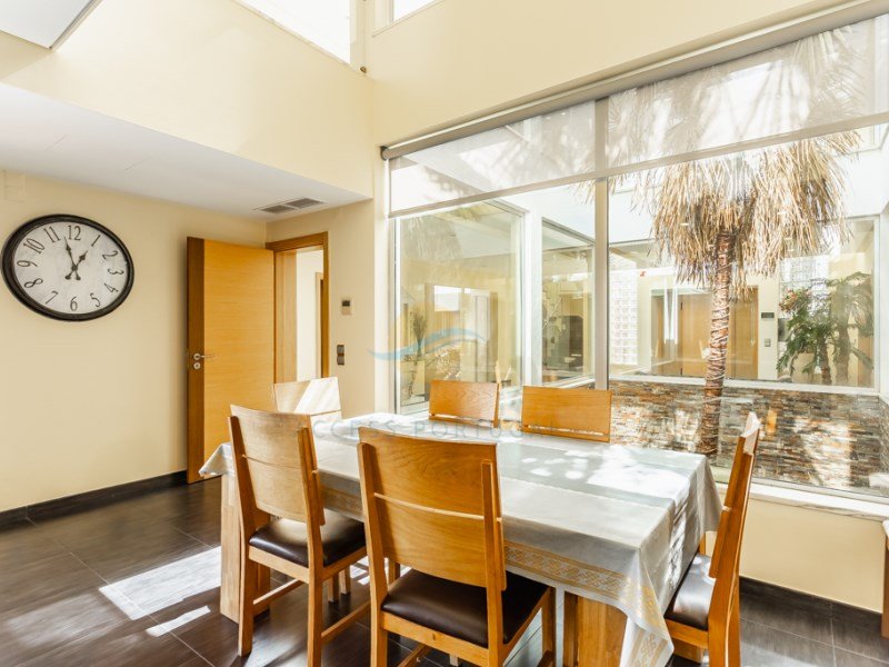 Beim Betreten durch das Haupttor werden Sie von einem gepflegten, reifen Garten und einem atemberaubenden zentralen Atrium empfangen, in dem Luxus in jedem Detail spürbar ist. Die Villa ist mit einem Aufzug ausgestattet, der einen einfachen Zugang zu den drei Hauptebenen bietet.