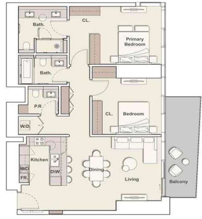 Die Porzellanfliesen in den Badezimmern sorgen für ein modernes und einladendes Ambiente, während die raumhohen Fenster für viel natürliches Licht und eine offene Atmosphäre in den Schlafzimmern sorgen. Die Soft-Close-Kleiderschränke bieten