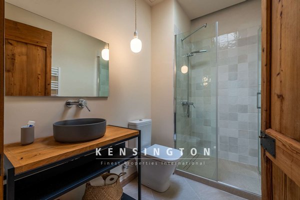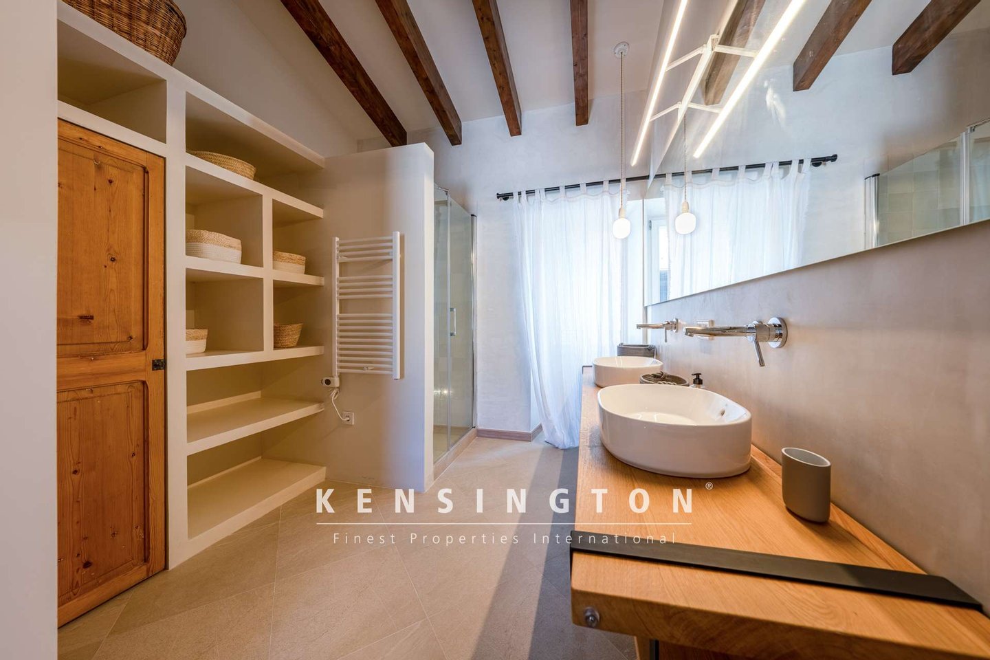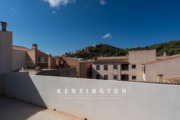 Dieses um die Jahrhundertwende erbaute Stadthaus wurde 2022 komplett saniert, stilsicher ausgestattet und eingerichtet. Die antiken Holztüren des Hauses und die wunderschöne und besondere Steininnentreppe wurden dabei erhalten. Über den Haupteingang im Erdgeschoss des Hauses, mit der typisch mallorquinischen Holzbalkendecke, gelangt man vom Flur aus in den geräumigen Hauswirtschaftsraum, das Gäste-WC und zu einem Schlafzimmer mit Bad en suite. Der Flur mündet im Wohnbereich, von welchem man auf die Terrasse und in den Garten gelangt, wie auch über eine Treppe in die 1. Etage des Hauses und direkt in die vollausgestattete, helle Einbauküche mit angrenzenden, gemütlichen Esszimmer. Des Weiteren findet man auf dieser Ebene ein Doppelschlafzimmer mit Bad en suite und Balkonzugang, von welchem man den Burg- und Fernmeerblick bis nach Menorca, geniessen kann. Es befinden sich noch ein Bad und zwei weitere Doppelschlafzimmer auf dieser Ebene, wovon eines, ebenfalls über einen Balkonzugang verfügt.