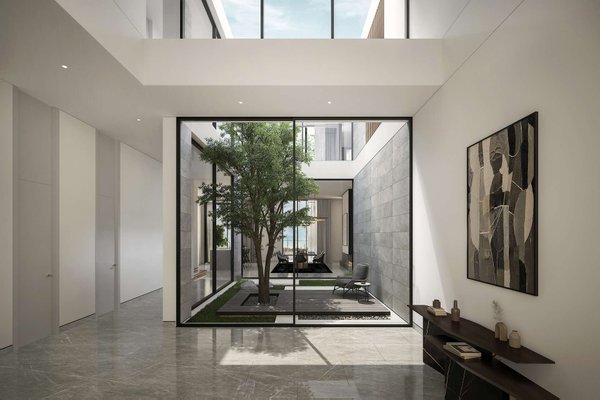 Treten Sie ein durch den Eingang mit doppelter Höhe und lassen Sie sich von den Premium-Steinoberflächen beeindrucken. Die Bibliothek und das Büro bieten Ihnen einen inspirierenden Raum zum Arbeiten und Entspannen.