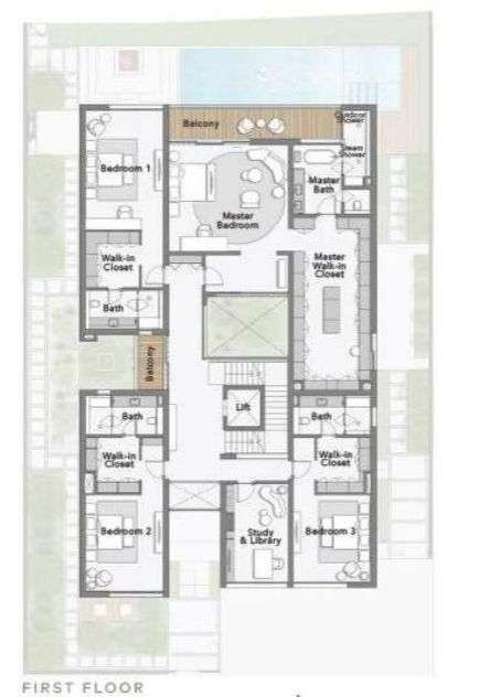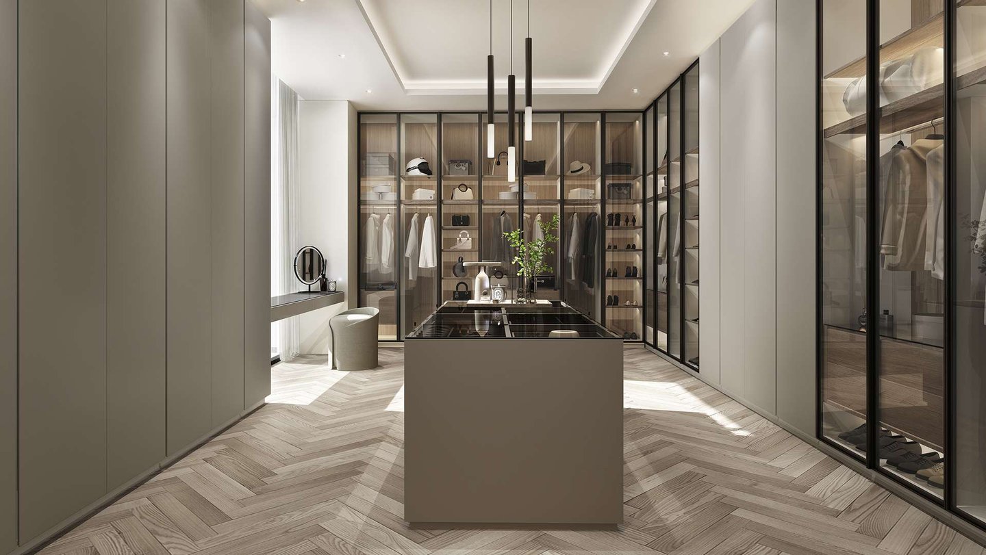 Die Master Suite beeindruckt mit einem Blick auf den Garten im Innenhof, die Lagune und den Burj Khalifa. Der großzügige begehbare Kleiderschrank für Sie und Ihn rundet das luxuriöse Wohngefühl ab.