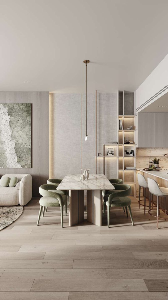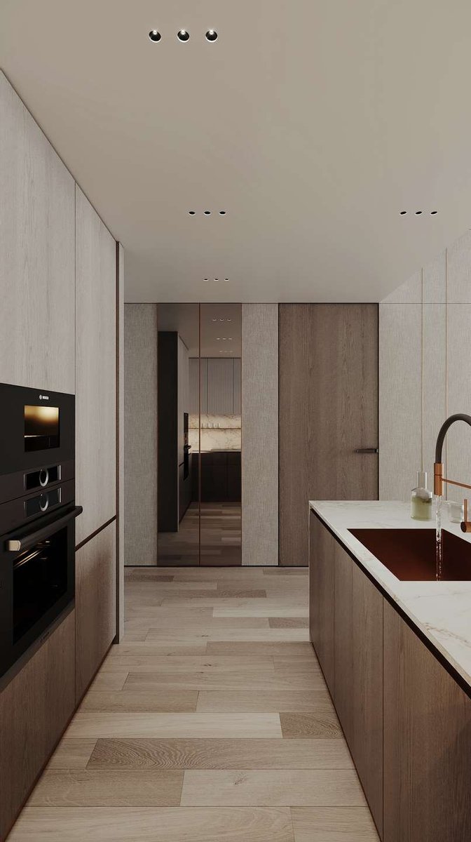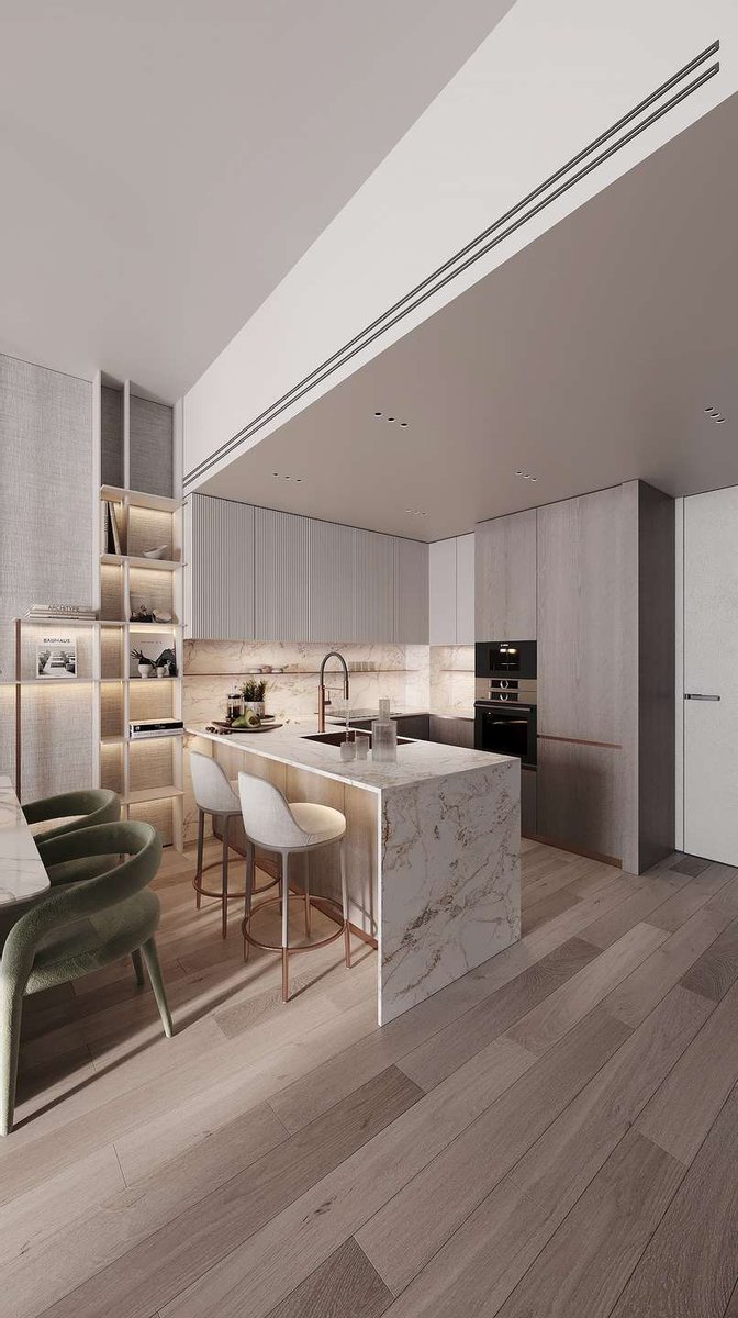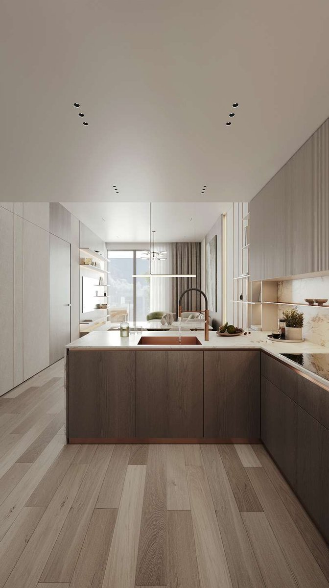 Willkommen in diesem exquisiten 1 Bedroom-Apartment! Beim Betreten des Apartments fällt sofort der hochwertige Bodenbelag in Holzoptik ins Auge, der eine warme und gemütliche Atmosphäre schafft. Die Küche besticht durch ihre elegante Marmorwandverkleidung, die in Kombination mit den Möbeln in Holzoptik ein harmonisches Gesamtbild ergibt.