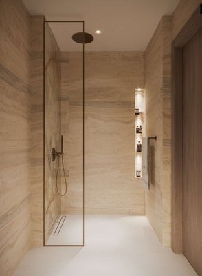 In der Küche erwartet Sie eine elegante Marmor Arbeitsplatte, die nicht nur funktional ist, sondern auch ein luxuriöses Ambiente schafft. Die Marmorwandvertäfelung verleiht der Küche eine zeitlose Eleganz und macht das Kochen zu einem wahren Vergnügen.