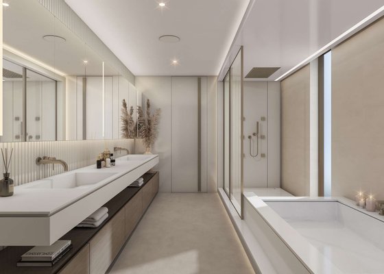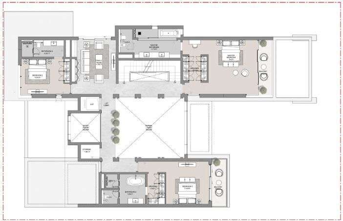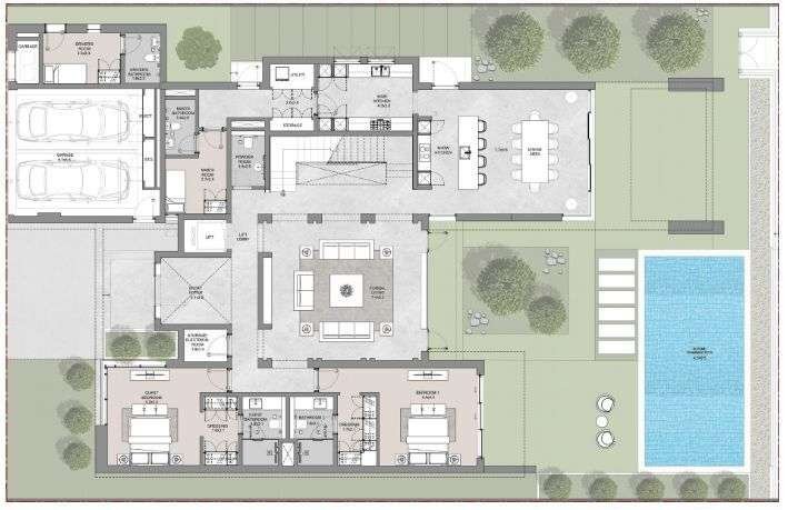 In dieser Villa finden Sie eine Showküche mit separatem Vorbereitungsraum, in dem Sie köstliche Mahlzeiten zubereiten können. Die Terrassenschiebetüren führen Sie zu einem privaten Strand, der nur wenige Schritte entfernt liegt. Genießen Sie den Luxus einer Doppelgarage, eines Maids Room und eines Aufzugs, der Sie bequem zu den verschiedenen Etagen bringt.