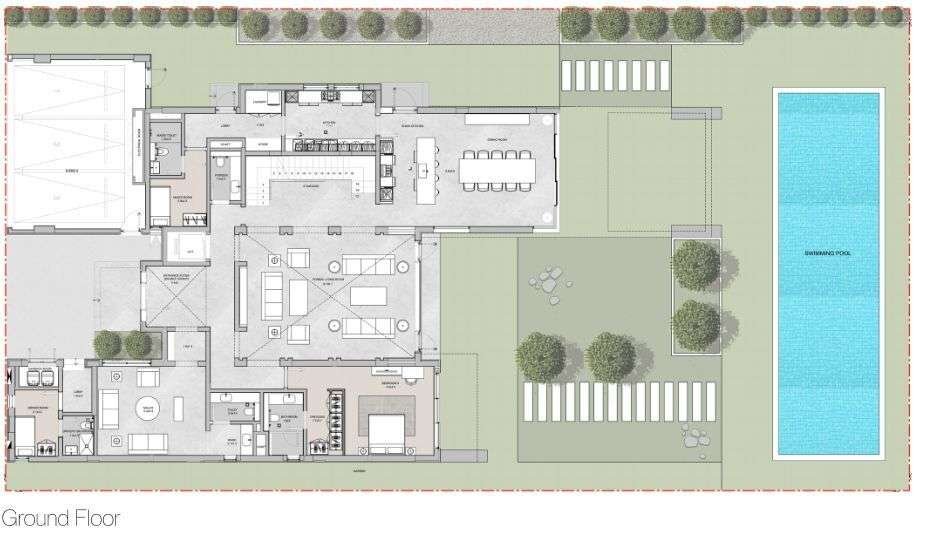 Sie betreten die beeindruckende 6 Schlafzimmer Villa über die elegante Doppelgarage und werden sofort von einem Maids Room und einem riesigen Wohn- und Essbereich empfangen. Die doppelte Deckenhöhe verleiht dem Raum eine großzügige Atmosphäre,