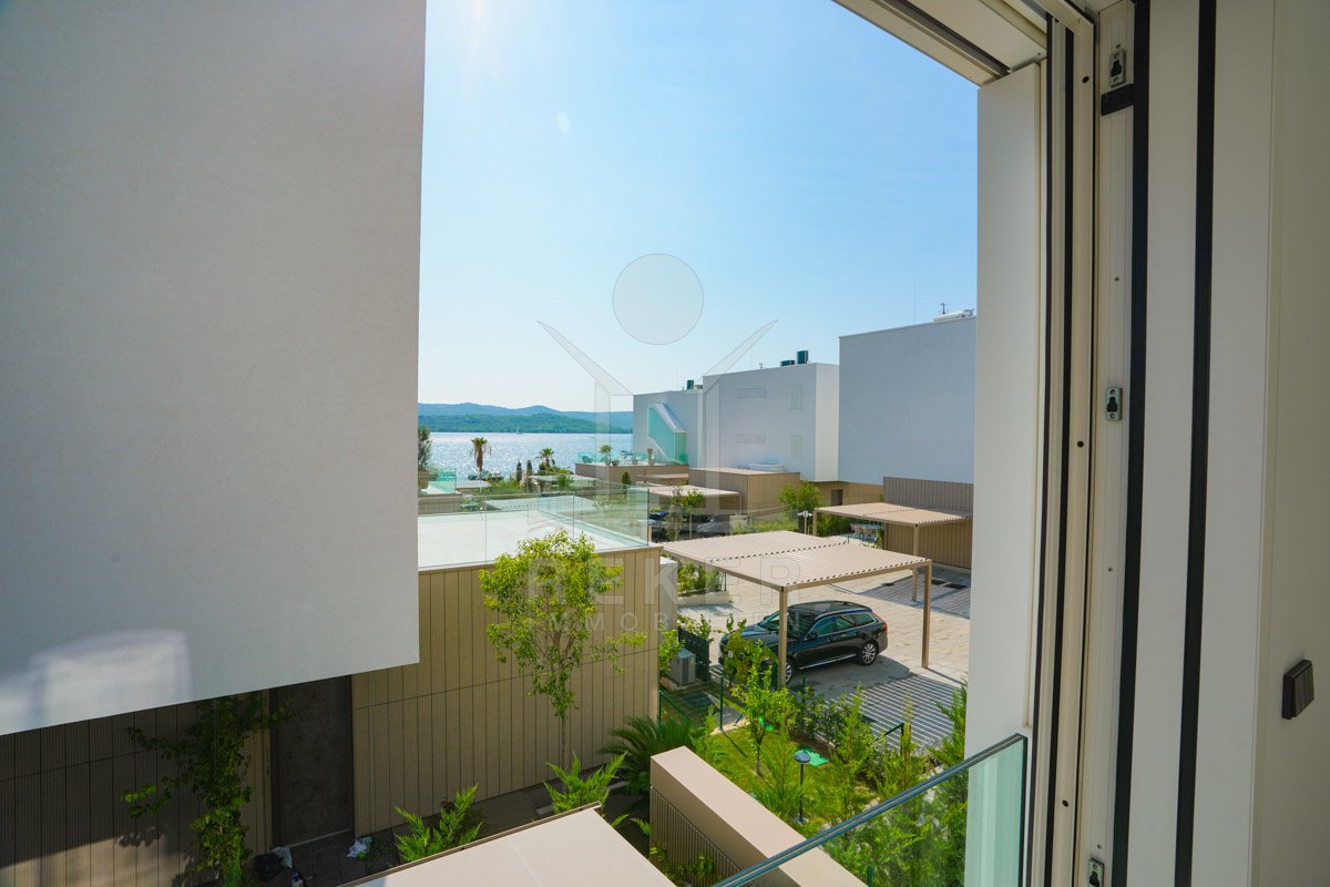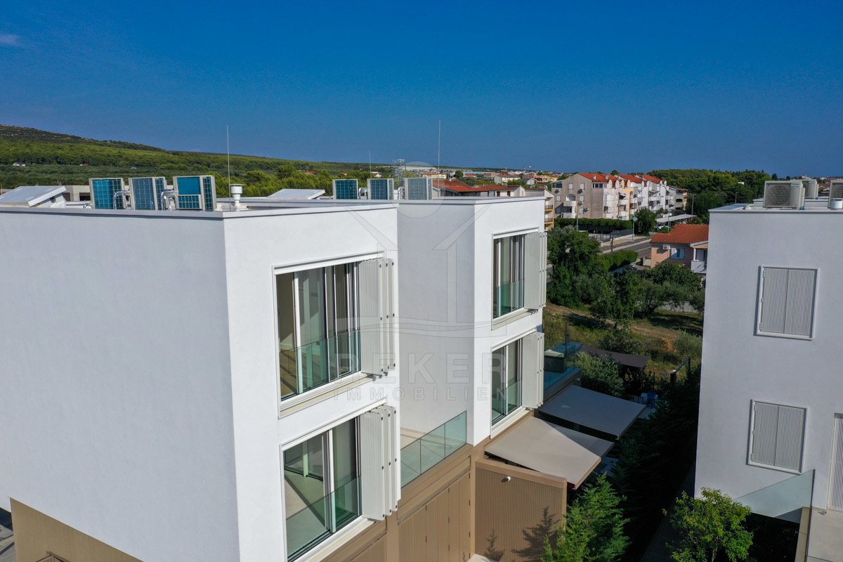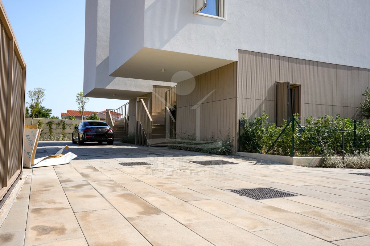 Entdecken Sie den Inbegriff modernen Wohnens in dieser exklusiven Maisonette in Turanj, eingebettet in eine erstklassige Küstenlage. Nur wenige Schritte vom glitzernden Meer entfernt, bietet diese luxuriöse Neubauwohnung alles, was Sie sich für ein
