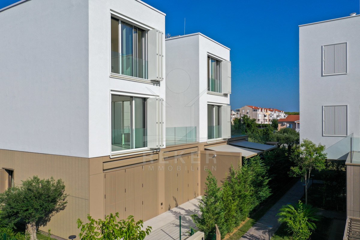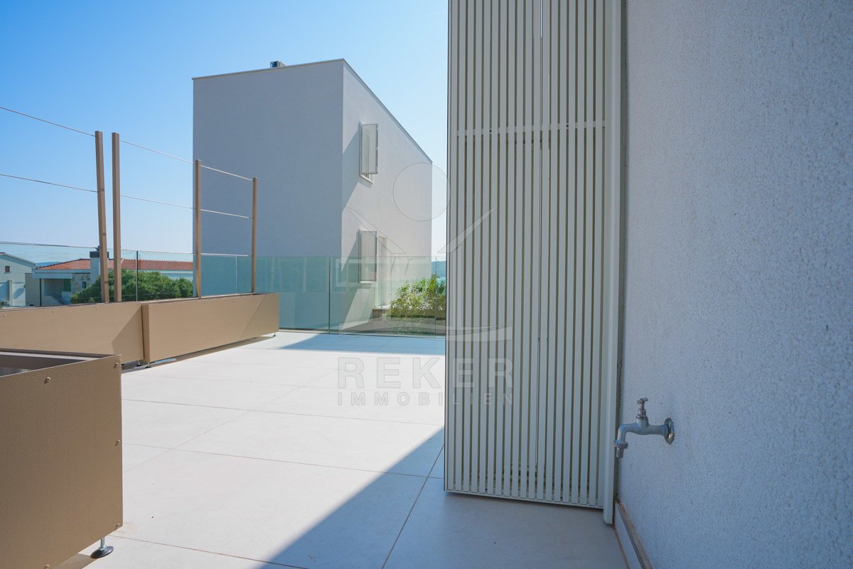 Entdecken Sie den Inbegriff modernen Wohnens in dieser exklusiven Maisonette in Turanj, eingebettet in eine erstklassige Küstenlage. Nur wenige Schritte vom glitzernden Meer entfernt, bietet diese luxuriöse Neubauwohnung alles, was Sie sich für ein Leben am Wasser wünschen. Die großzügige Dachterrasse lädt dazu ein, atemberaubende Sonnenuntergänge zu genießen und die frische Meeresbrise zu verspüren. Die Maisonette besticht durch ihre gehobene Ausstattung und ihr modernes Design, das Eleganz und Funktionalität vereint. Jedes Detail wurde sorgfältig durchdacht, um Ihnen höchsten Komfort und Stil zu bieten. Seien Sie Teil dieses einzigartigen Projekts, das ein traumhaftes Küstenleben verspricht. Lassen Sie sich von der Qualität und der Lage verzaubern - kontaktieren Sie uns gerne für weitere Informationen!