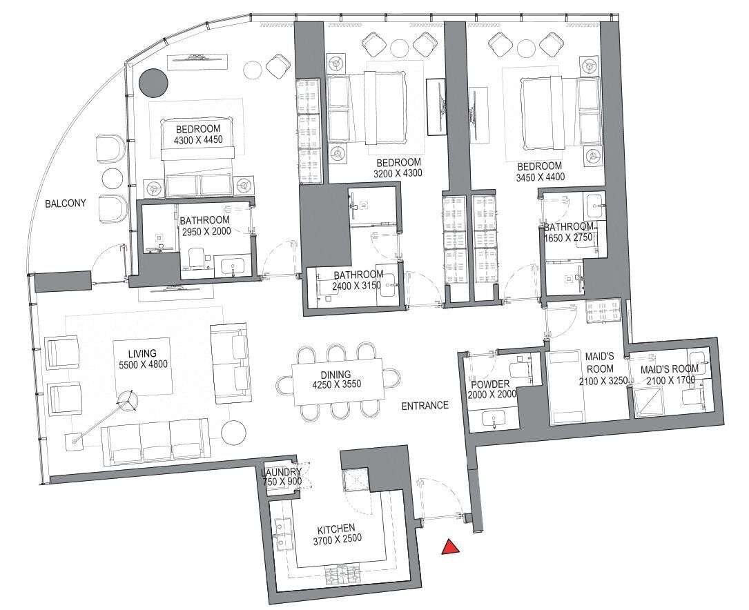 Treten Sie ein in Ihr neues Zuhause und lassen Sie sich von den beeindruckenden Merkmalen dieser 3 Schlafzimmer-Wohnung verzaubern. Die Kleiderschränke sind elegant mit Kunstleder und kunstfertigem Furnier gestaltet, während die Geschosshöhe von 3,6