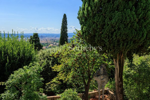 Die Villa ist auf drei Seiten von einem herrlichen Garten umgeben, in dem ein bemerkenswerter Renaissance-Brunnen aus Pietra Serena, der mit toskanischen Säulen verziert ist, hervorsticht.