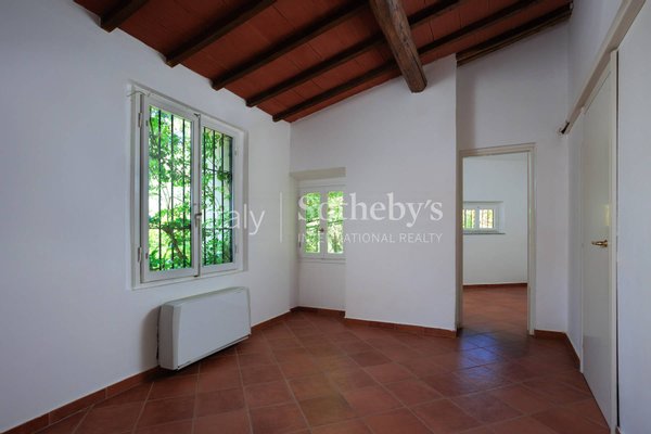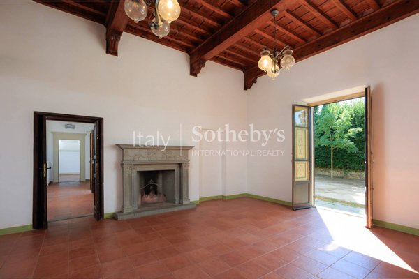 Die Villa ist auf drei Seiten von einem herrlichen Garten umgeben, in dem ein bemerkenswerter Renaissance-Brunnen aus Pietra Serena, der mit toskanischen Säulen verziert ist, hervorsticht.