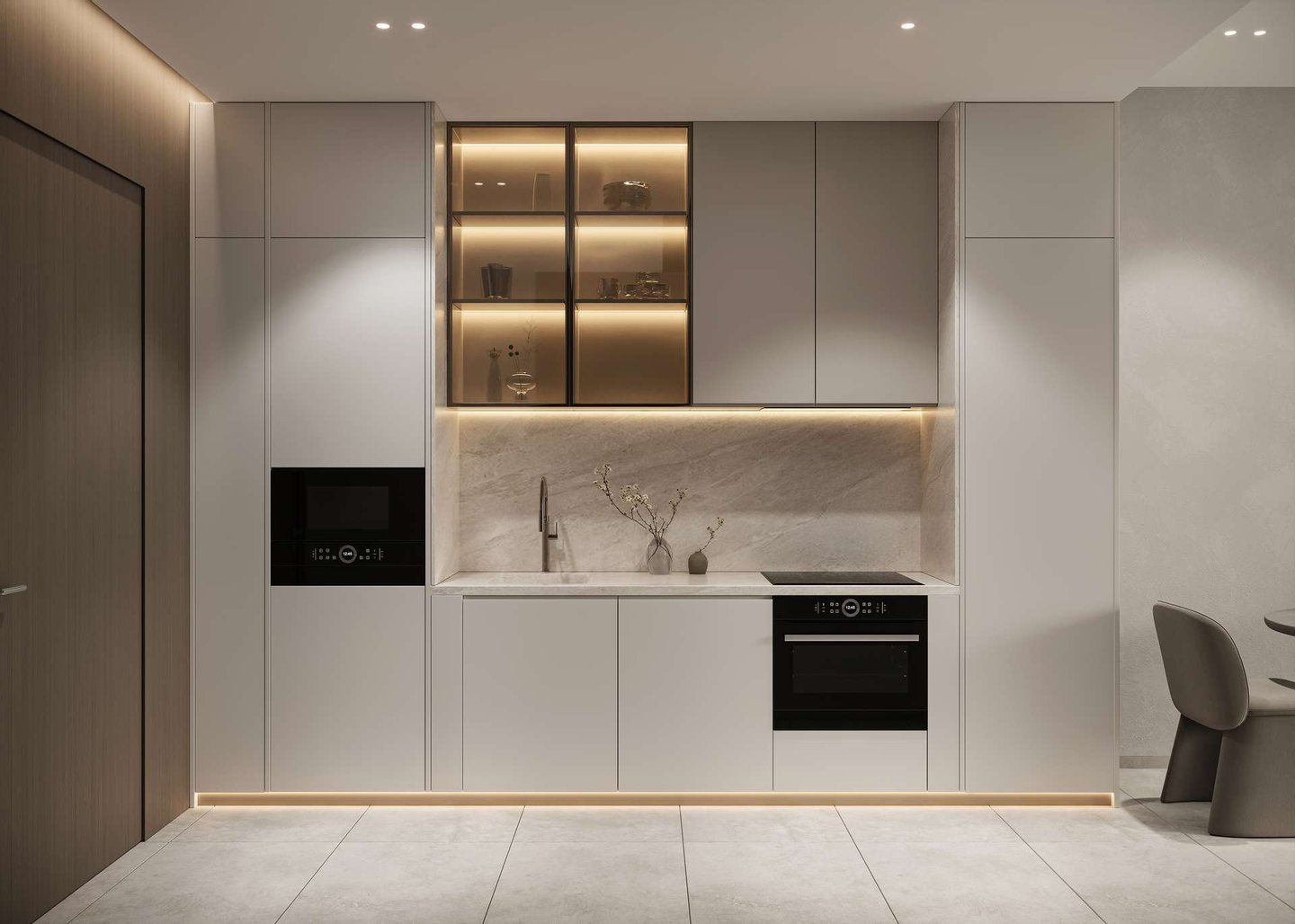 Treten Sie ein in Ihre persönliche Oase der Ruhe und Entspannung. Die großen raumhohen Fenster lassen das natürliche Licht herein und schaffen eine helle und offene Atmosphäre. Die moderne Einbauküche lädt zum Kochen und Genießen ein, während die