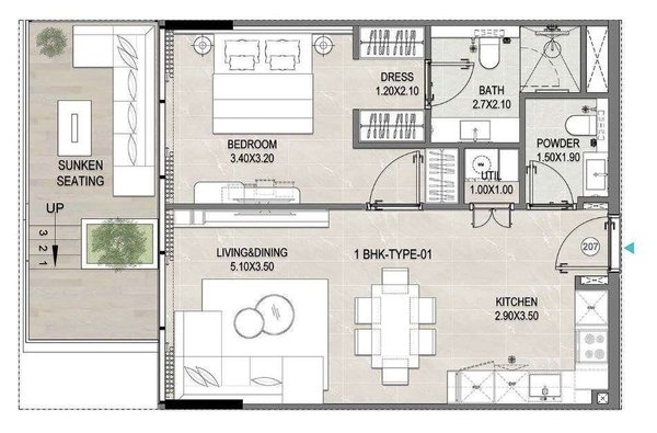Erleben Sie Wohnen auf höchstem Niveau in dieser exquisiten 1-Schlafzimmer-Immobilie und lassen Sie sich von all den luxuriösen Details und Annehmlichkeiten begeistern. Willkommen zu Hause!