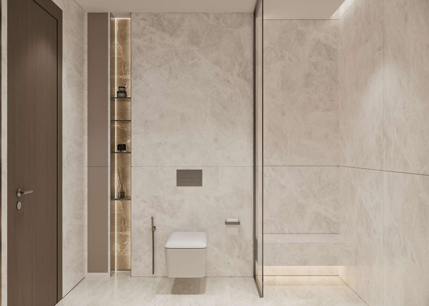 Die edlen Fliesen verleihen dem gesamten Raum einen eleganten Touch, während der Sunken Garden, ein innovatives Clima-Control-System, eine angenehme Wohlfühlatmosphäre schafft. Genießen Sie entspannende Duschen unter der Regendusche und stauen Sie Ihre Kleidung in den eingebauten Kleiderschränken.