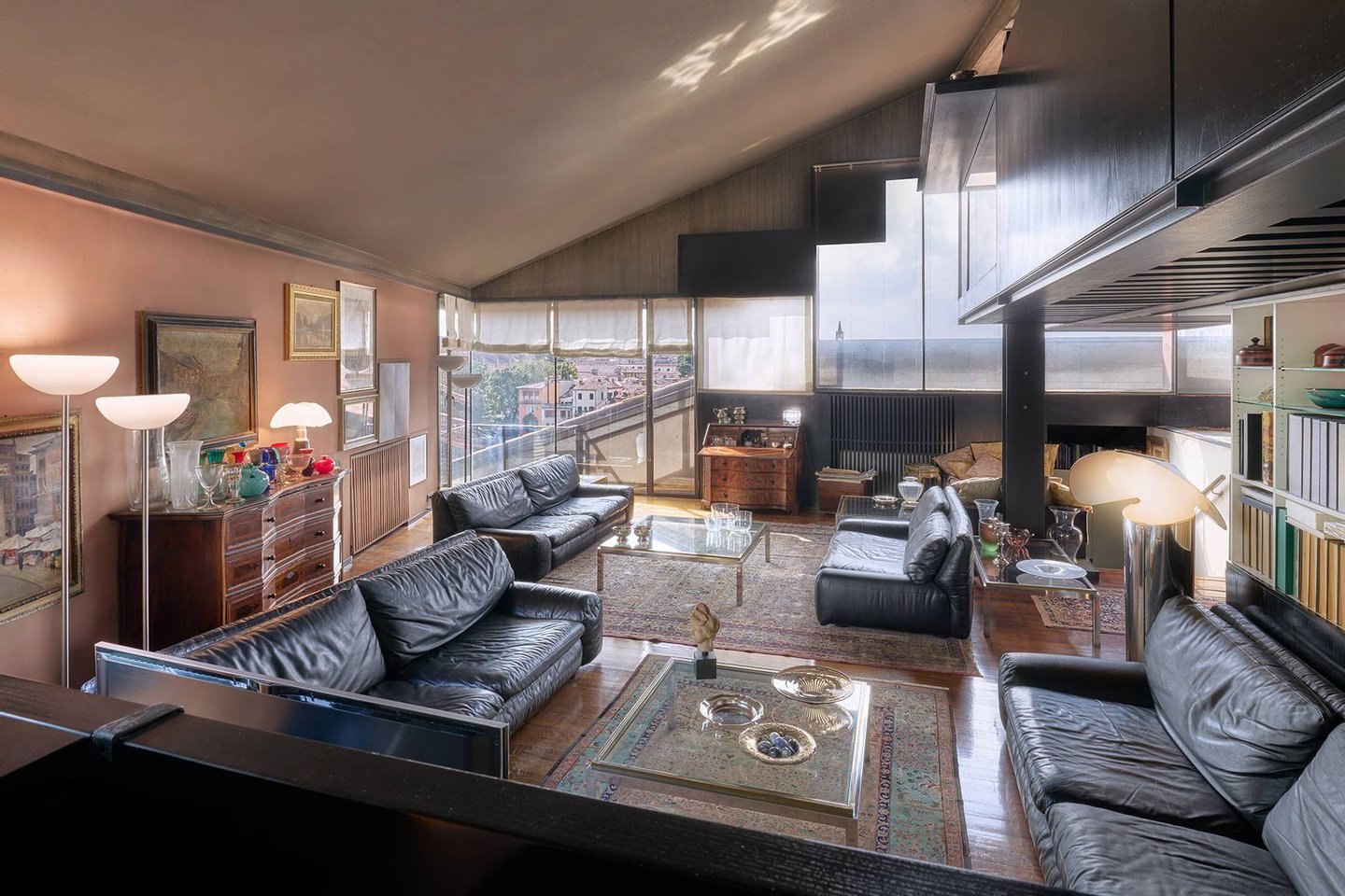 In dem malerischsten Teil der historischen Altstadt von Verona befindet sich diese außergewöhnlich schöne Immobilie, entworfen vom renommierten Architekten Giorgio Ugolini. In erhöhter Lage gelegen, bietet dieses großzügige Penthouse einen