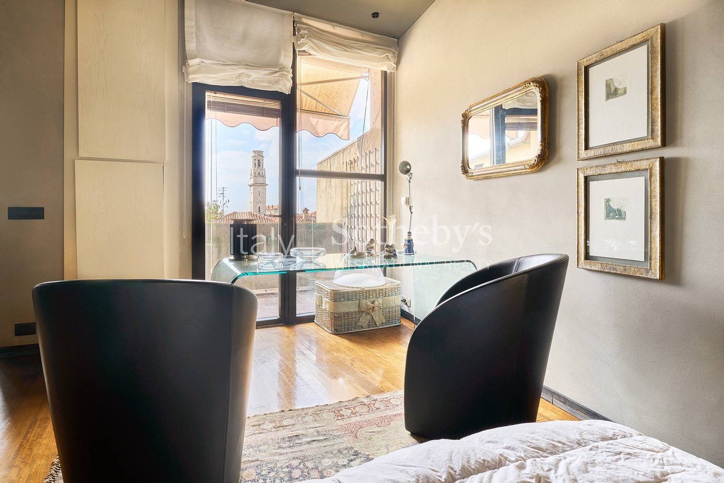 In dem malerischsten Teil der historischen Altstadt von Verona befindet sich diese außergewöhnlich schöne Immobilie, entworfen vom renommierten Architekten Giorgio Ugolini. I