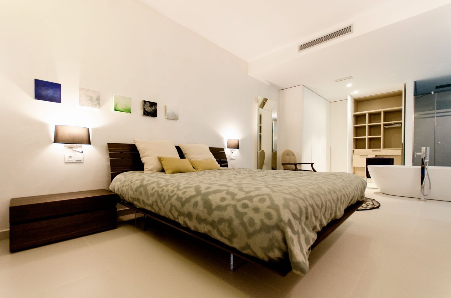 Diese atemberaubende Villa ist auf zwei Ebenen mit 4 Schlafzimmern, 4 Bädern, einem großen offenen Wohn-/Essbereich und einer amerikanischen Küche, einer großen Dachterrasse und einem Keller. Im Erdgeschoss befindet sich das Hauptschlafzimmer mit Ankleidebereich und eigenem Bad, ein weiteres Doppelschlafzimmer und ein Familienbad. Im ersten Stock befinden sich zwei weitere Doppelschlafzimmer (eines mit eigenem Bad), ein Familienbad und ein Abstell-/Waschraum. Im ersten Stock befindet sich auch eine 49 m2 große Terrasse. Das ultramoderne Design entspricht den höchsten Standards und verwendet nur die besten Einrichtungsgegenstände und Armaturen.
