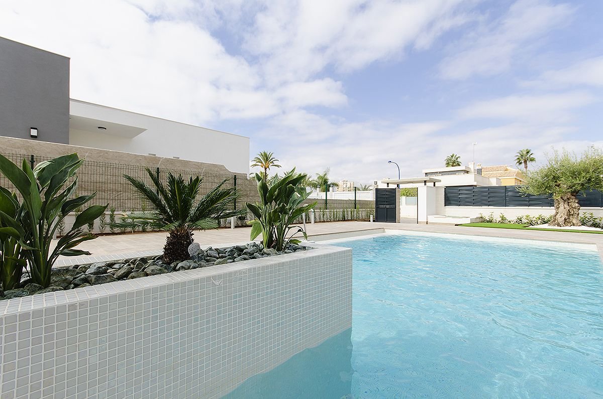 Moderne, luxuriöse Neubauvillen in Campoamor in atemberaubender, erhöhter Lage nahe der Natur und dem Meer. In fußläufiger Entfernung zu den schönen Sandstränden, dem schönen Yachthafen und der Promenade, lokalen Bars, Restaurants und Geschäften.