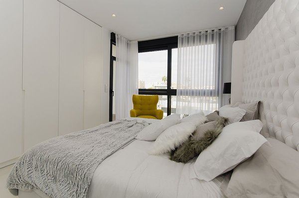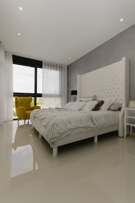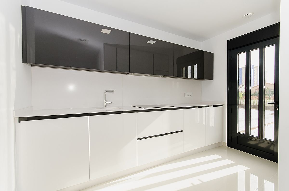 Diese atemberaubende Villa ist auf zwei Ebenen mit 3 Schlafzimmern, 3 Bädern, offenem Wohn-/Essbereich und amerikanischer Küche, großer Dachterrasse und Keller. Im Erdgeschoss befinden sich ein Doppelschlafzimmer mit eigenem Bad und ein separates Gästebad. Im ersten Stock befinden sich zwei weitere Doppelschlafzimmer, beide mit eigenem Bad, eines der Schlafzimmer hat direkten Zugang zu einer großen Terrasse. Das ultramoderne Design entspricht den höchsten Standards und verwendet nur die besten Einrichtungsgegenstände und Armaturen.