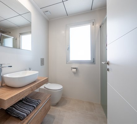 Mit einem auffallend mediterranen Design legt die Villa den Schwerpunkt auf die Verwendung von langlebigen Materialien und die höchste Qualität der Verarbeitung. Die Fassade des Anwesens besteht aus einer Mischung aus Putz und Naturstein, die das Haus vor Witterungseinflüssen schützt und eine Verbindung mit der Umgebung herstellt.