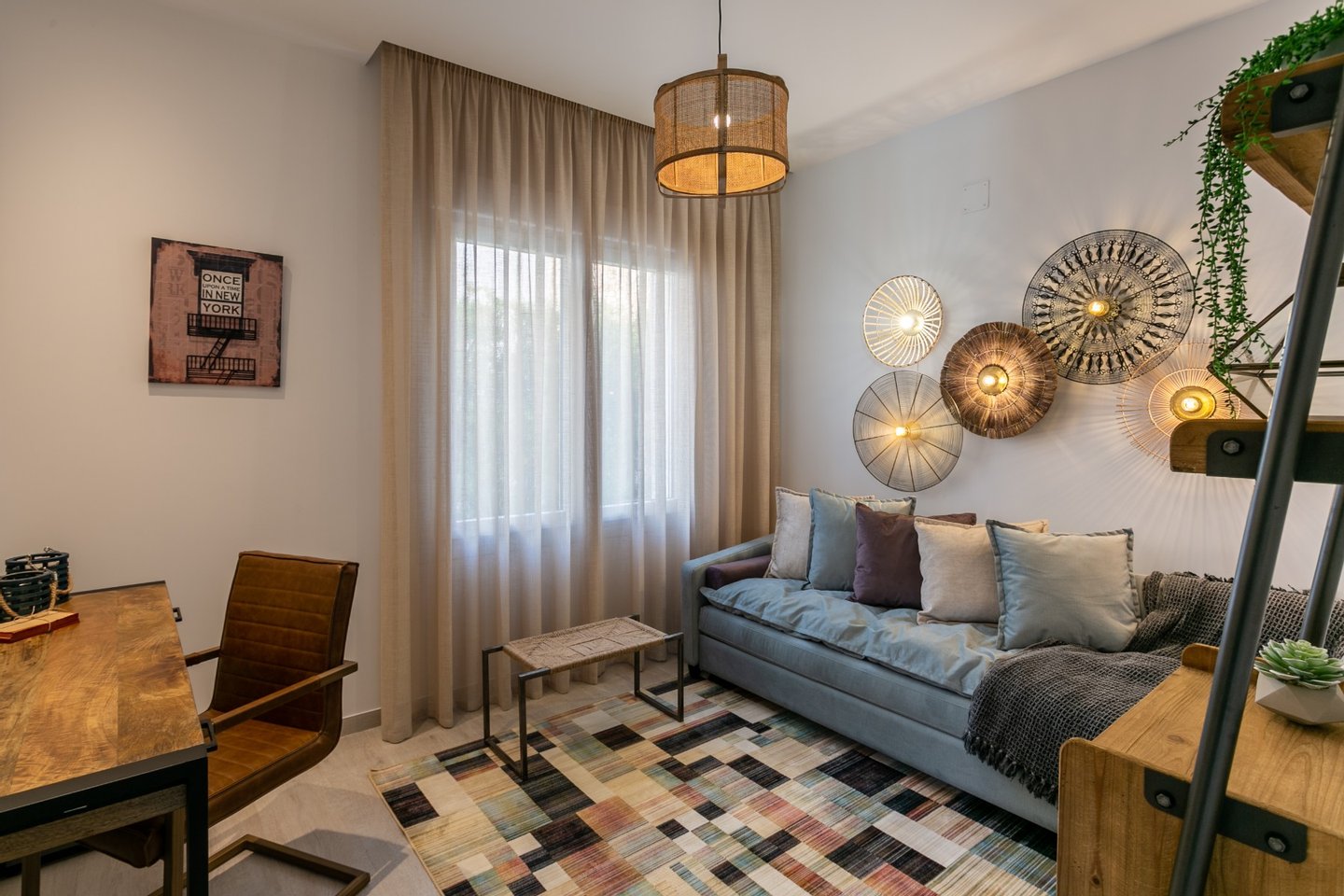 Der Grundriss besteht aus einem Eingangsflur, der zu einem geräumigen, offenen Wohn- und Essbereich mit einer Küche im amerikanischen Stil führt, die viel Licht und Platz bietet und durch die großen Doppelfenster auf die Außenterrasse und den Gartenbereich führt, einem Hauptschlafzimmer mit eigenem Bad und begehbarem Kleiderschrank, zwei weiteren Doppelschlafzimmern und einem Gästebad. Im Preis inbegriffen sind eine Klimaanlage, Fußbodenheizung in allen Bädern, Einbauschränke in allen Schlafzimmern, ein 7x4m großer privater Swimmingpool und ein privater Parkplatz auf dem Grundstück.