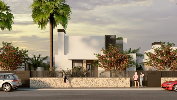 Die Innenräume verfügen über einen geräumigen Wohn- und Essbereich mit viel natürlichem Licht durch die großen Fenster, eine offene Küche, zwei Doppelschlafzimmer im Erdgeschoss (eines mit eigenem Bad) und ein separates Gästebad. Im ersten Stock befindet sich ein großes Hauptschlafzimmer mit eigenem Bad und begehbarem Kleiderschrank. Das Hauptschlafzimmer hat Zugang zu einer großen Terrasse, auf der Sie die Sonne und den herrlichen Blick auf Loch 2 des Golfplatzes La Finca genießen können.Die Immobilie verfügt über eine Klimaanlage und Fußbodenheizung in der gesamten Villa und ein Hausautomatisierungssystem.