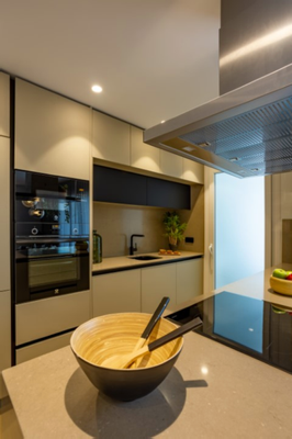 Die Apartments verfügen über einen offenen Wohn- und Essbereich, eine moderne amerikanische Küche mit separatem Hauswirtschaftsraum, ein Hauptschlafzimmer mit eigenem Bad, ein zweites Doppelschlafzimmer und ein Gästebad. Die Wohnungen im Erdgeschoss haben Zugang zu einer vorderen und hinteren Terrasse und die Wohnungen im Dachgeschoss haben Zugang zu einer großen Dachterrasse von 72m2 von einer Außentreppe auf der unteren Terrasse.