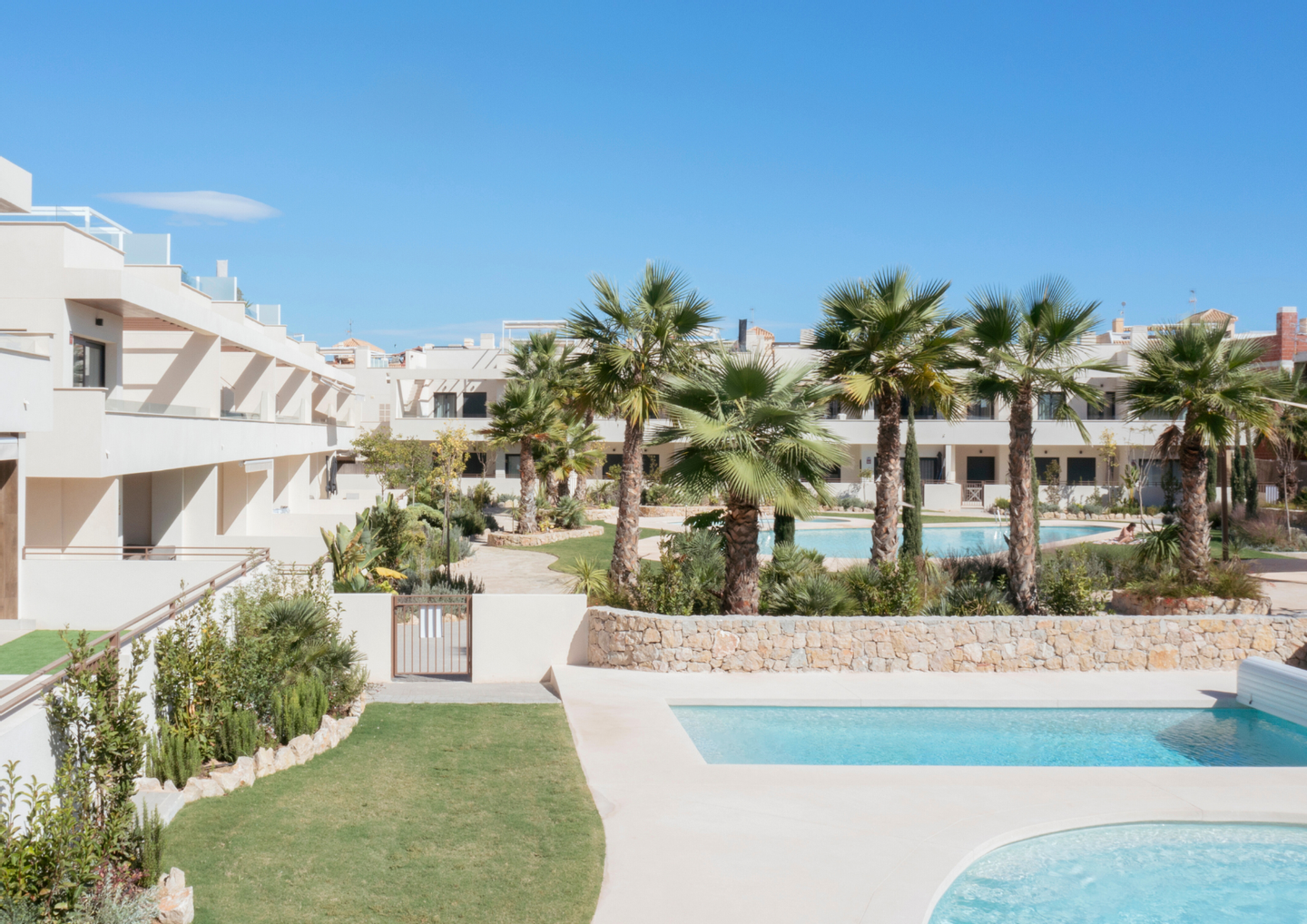 Die Anlage besteht aus 2- und 3-Schlafzimmer-Wohnungen mit großen Außenbereichen und einem avantgardistischen Design mit zwei verschiedenen Eigentumstypen; Erdgeschosswohnungen mit Garten und Dachgeschosswohnungen mit einer großen privaten Sonnenterrasse. Die geschlossene Wohnanlage verfügt über weitläufige Gemeinschaftsbereiche, darunter drei Außenpools für Erwachsene und Kinder, einen Fitnessraum, einen beheizten Swimmingpool sowie verschiedene Gartenbereiche und Chill-out-Zonen.