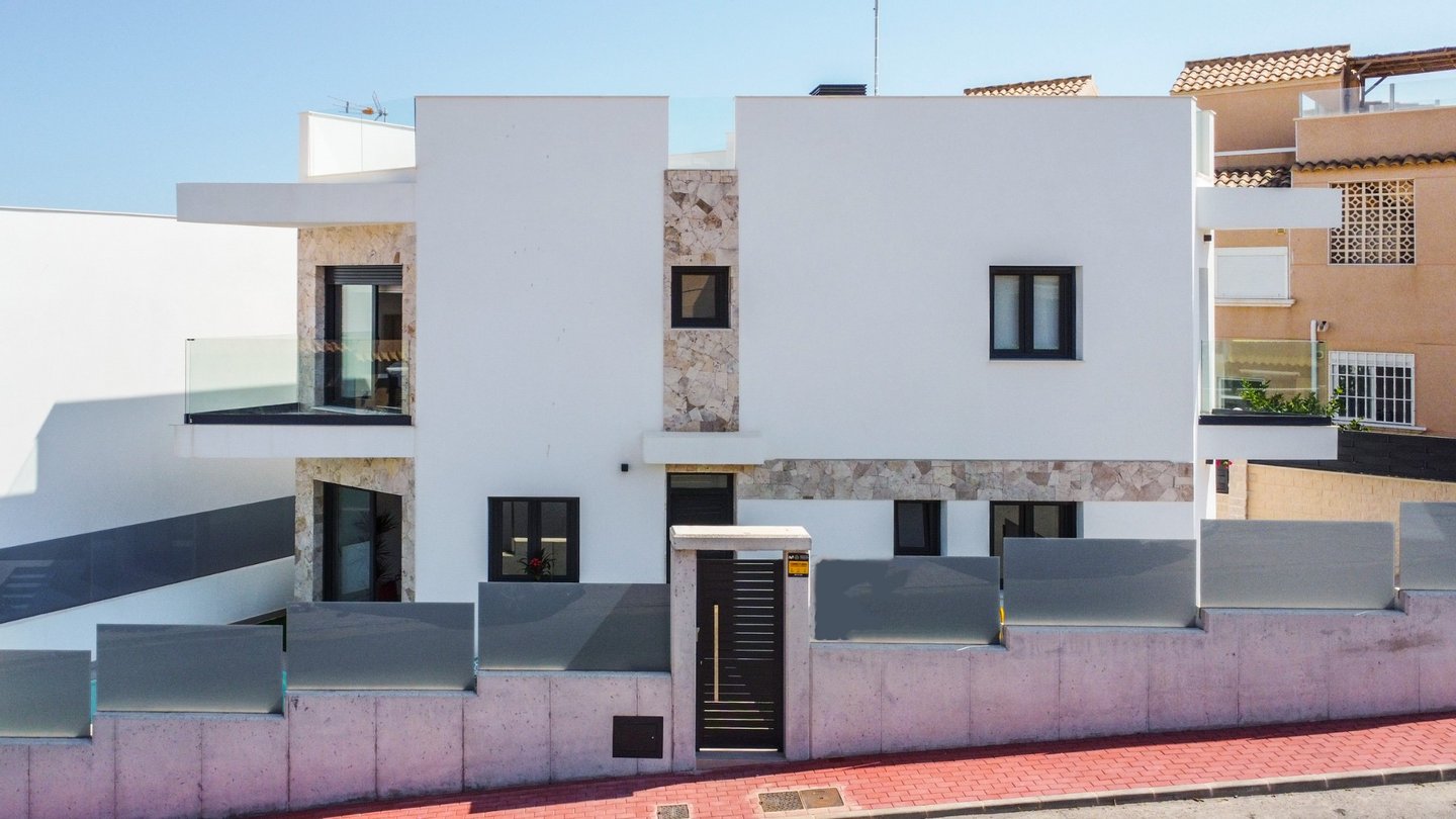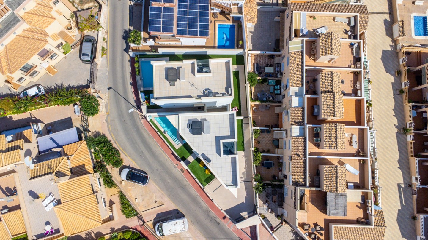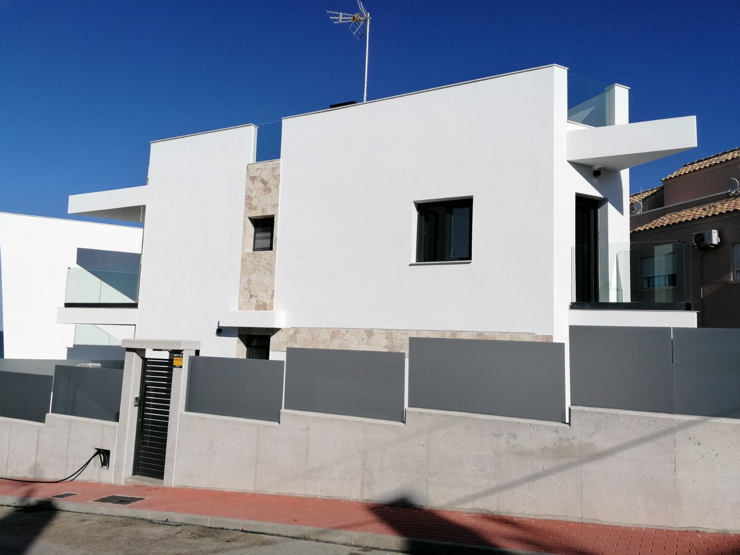 Exklusive einzigartige Villa mit 3 Schlafzimmern, privatem Pool und herrlichem Meerblick in der Gegend von La Manguilla, zwischen La Mata und Cabo Cervera in Torrevieja (Alicante), nur 150 Meter vom Strand entfernt.